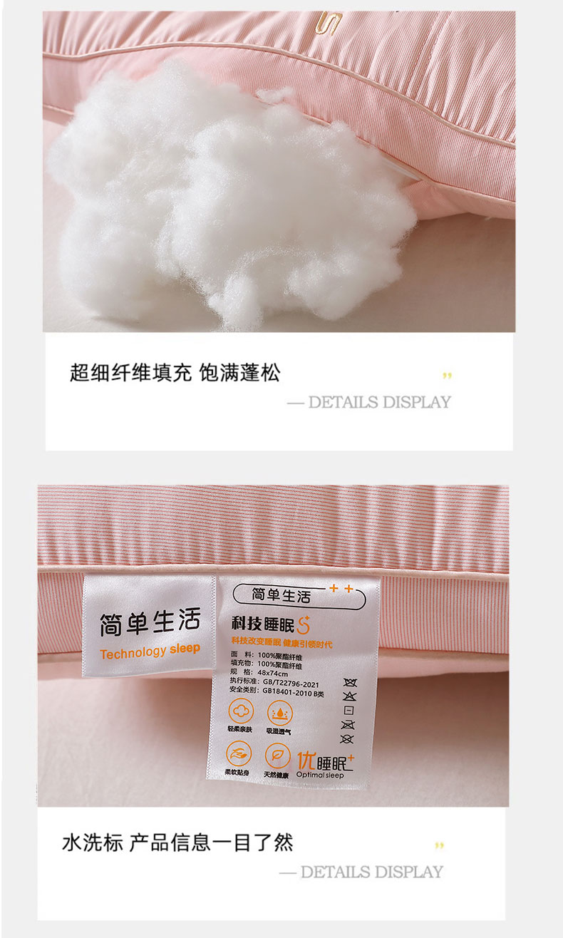 当前位置: 91家纺网 > 商品网购 > 枕头/枕芯/保健枕/颈椎枕 > 普通枕芯 > 大熊枕芯 2025新款新品简单生活舒适中低枕头枕芯 简单生活舒适枕-粉色 48*74cm中枕一只