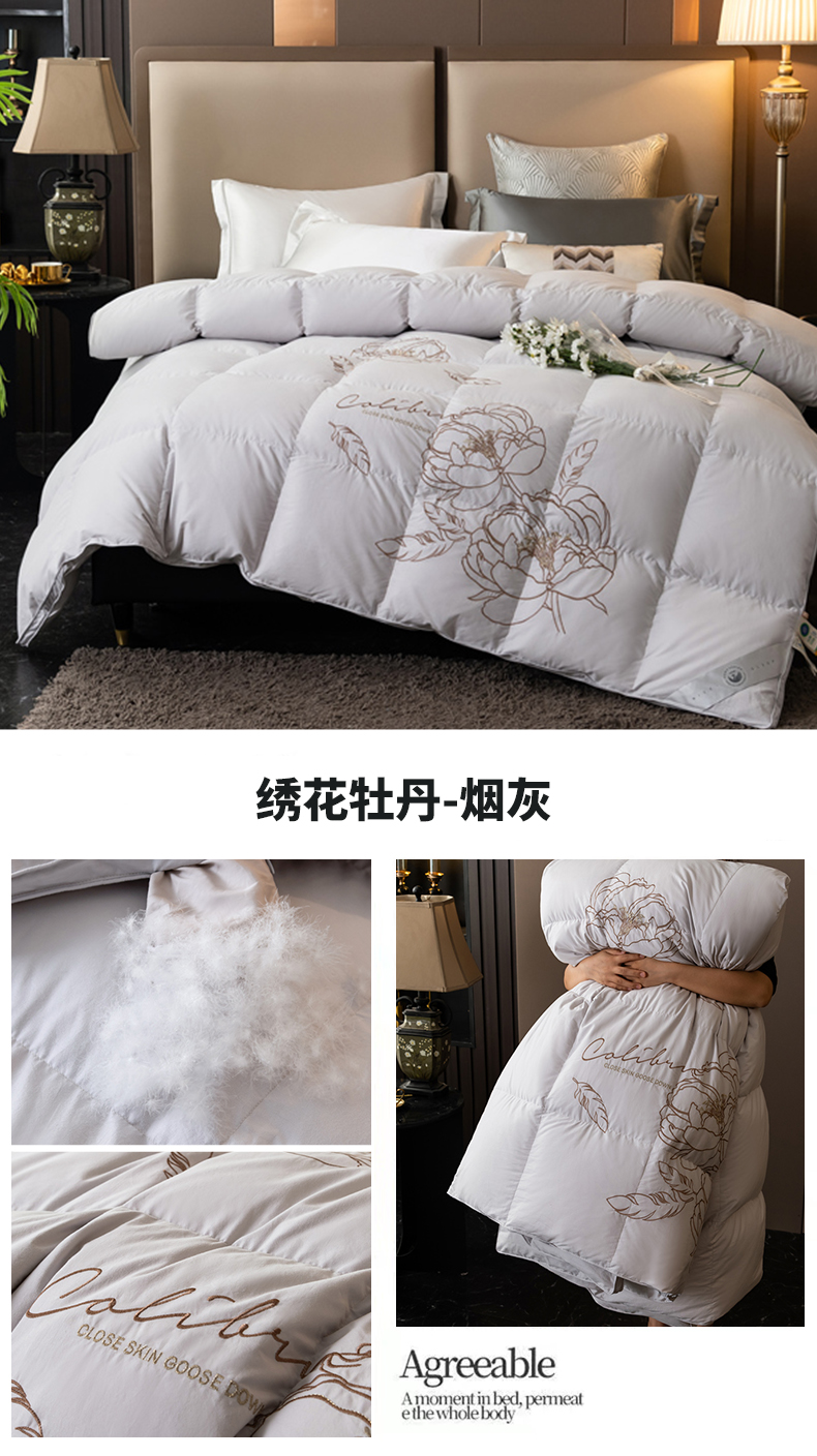 • 91家纺网 家纺一手货源 找家纺 四川牛皮席 2025新款绣花牡丹95%鹅绒被 绣花牡丹-烟灰