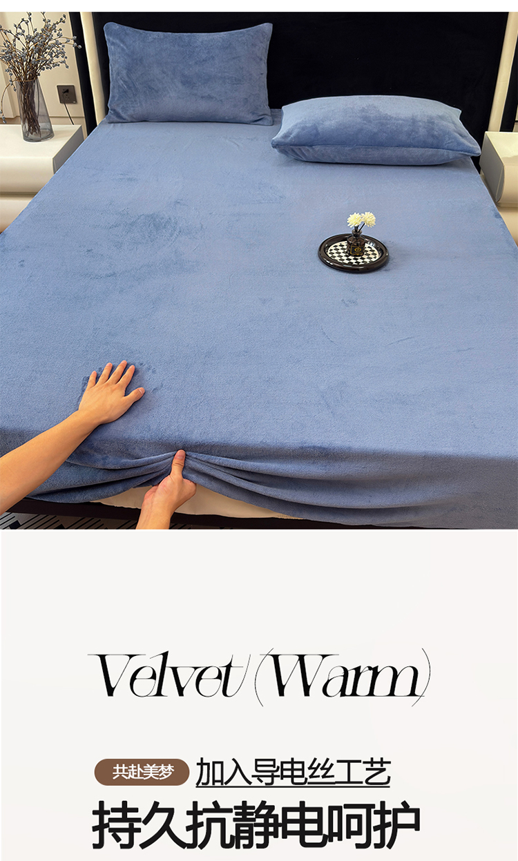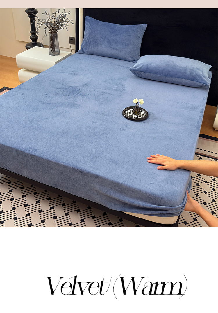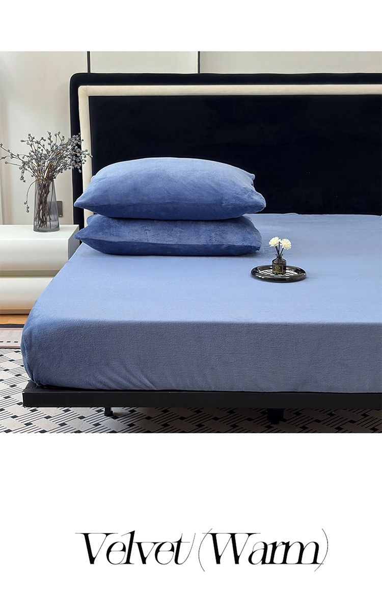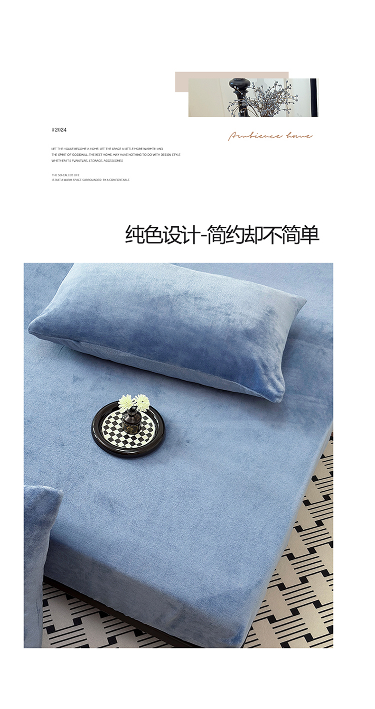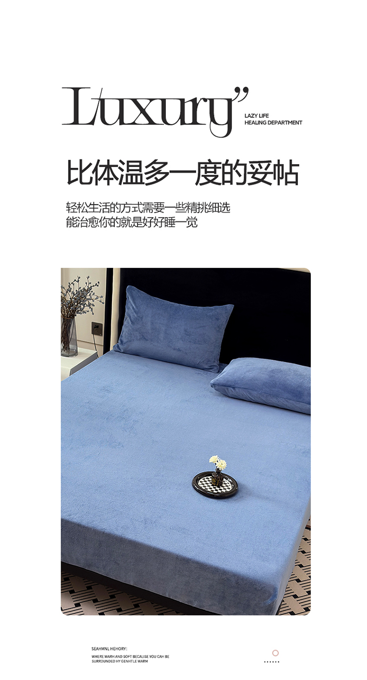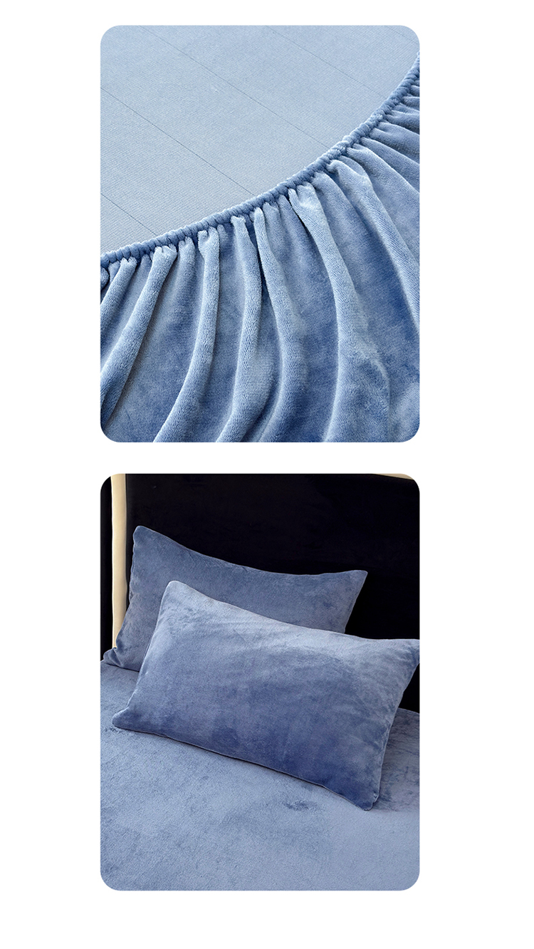 商品名称:2025新款高克重纯色保暖牛奶绒单床笠枕套 宾利蓝