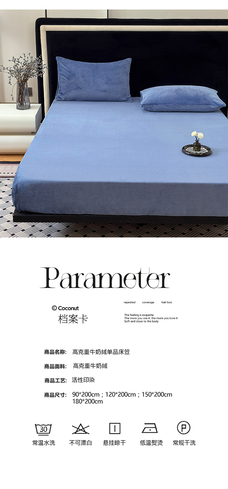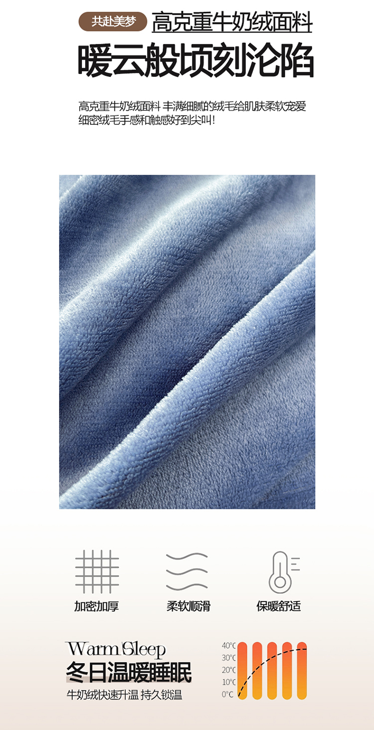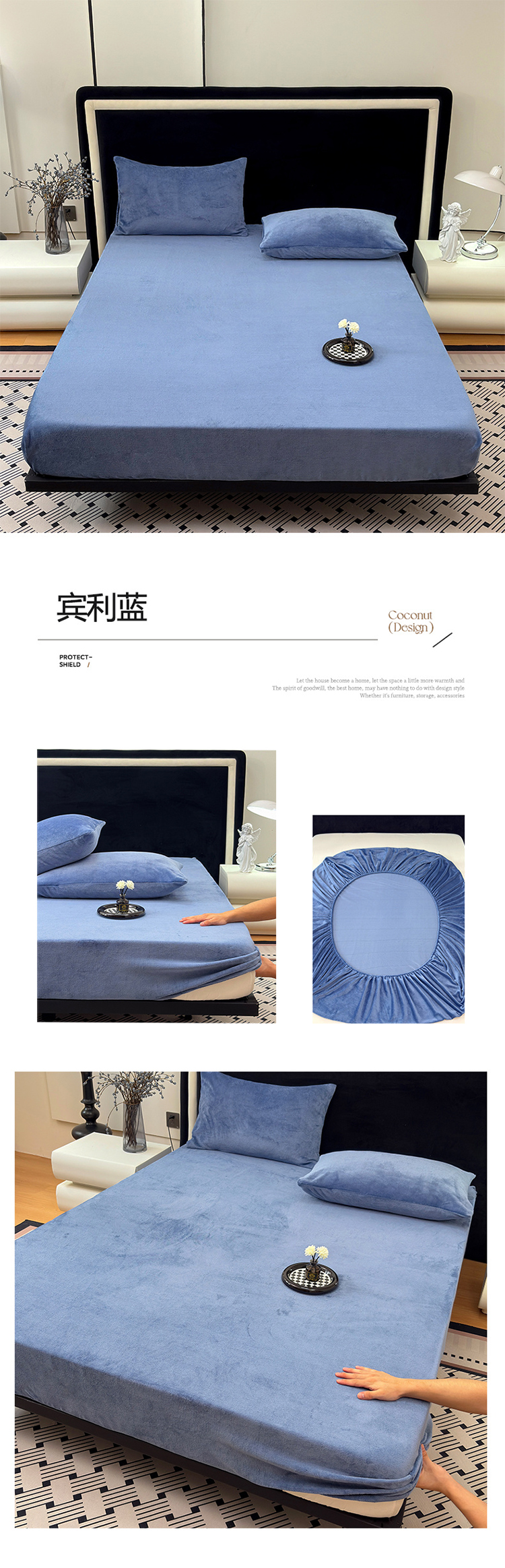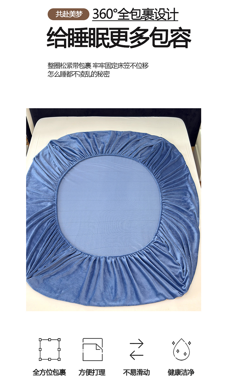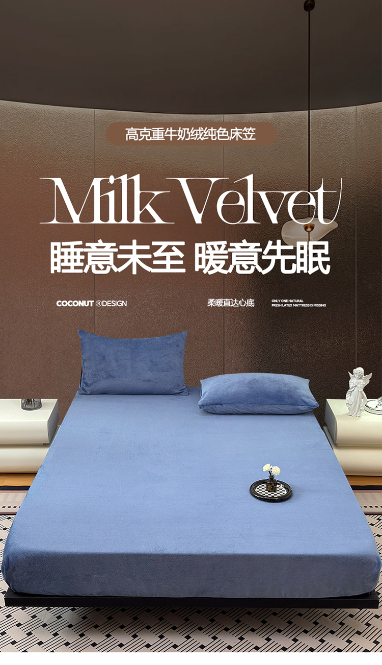 商品名称:2025新款高克重纯色保暖牛奶绒单床笠枕套 宾利蓝