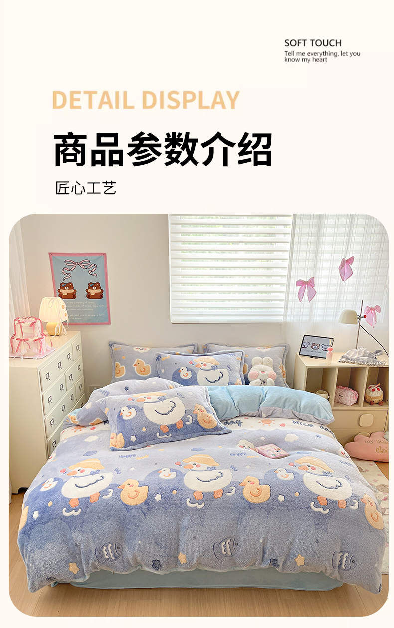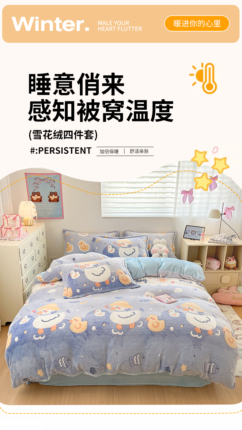 当前位置: 91家纺网 > 商品网购 > 床品套件 > 四件套 > 其它四件套 > 川悦生活 2025新款立体雪花绒印花大床四件套系列一场景一 哒哒鸭丫
