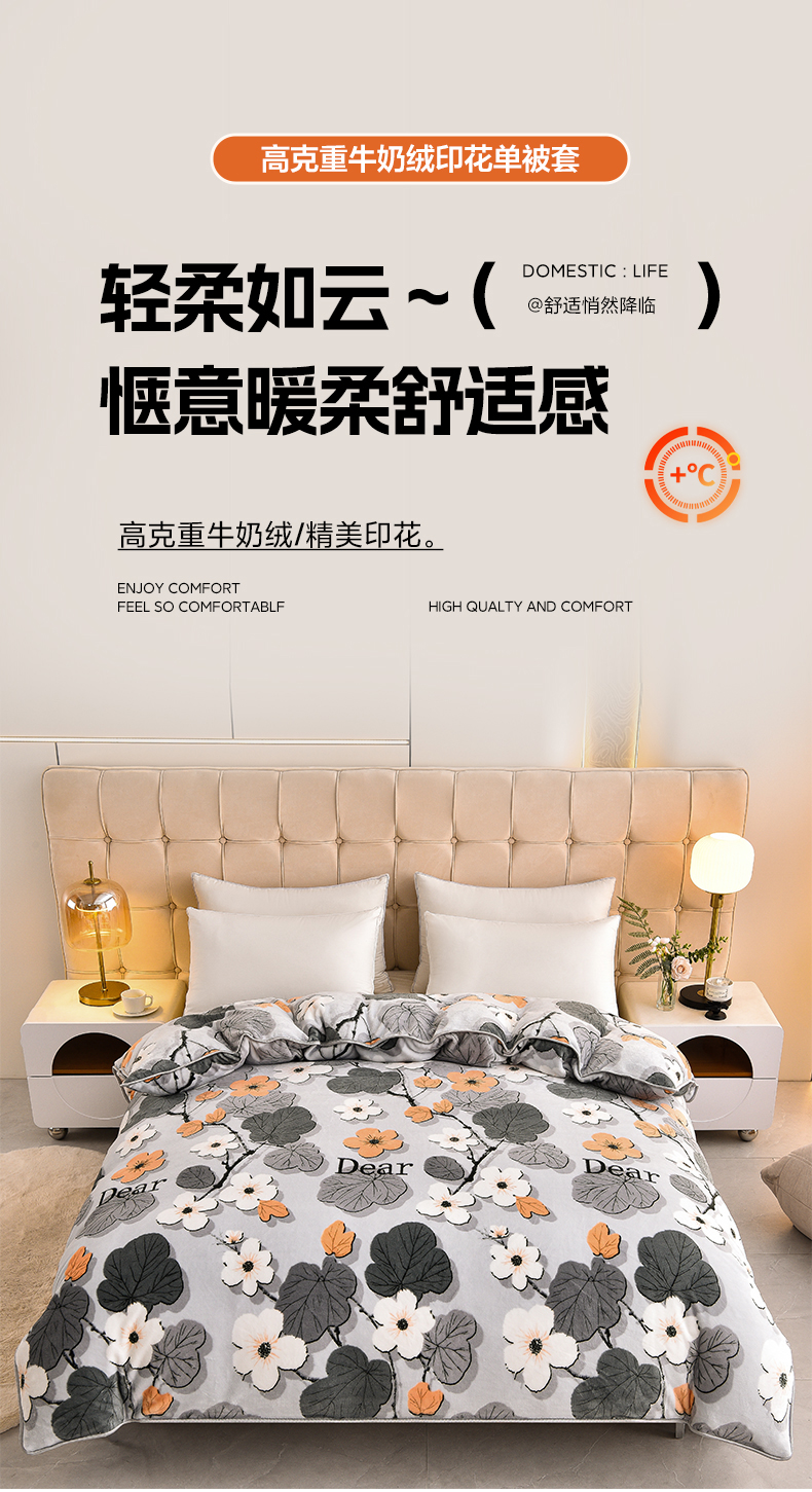 (总)博兰蒂 2025秋冬新款高克重牛奶绒印花单被套,发财鹿,金枝玉叶,田园花卉,叶之舒-绿,一路生花,一路有你