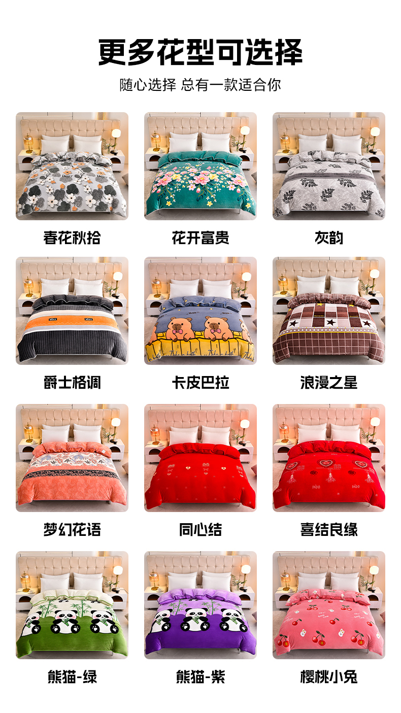 • 91家纺网 家纺一手货源 找家纺 (总)博兰蒂 2025新款床裙款高克重牛奶绒印花单被套,爵士格调,春花秋拾,花开富贵,卡皮巴拉,浪漫之星,梦幻花语,同心结,喜结良缘,熊猫-绿,熊猫-紫,叶语,樱桃小兔,三生有幸,草莓兔,拉布布,发财鹿,金枝玉叶,田园花卉,叶之舒-绿,一路生花,一路有你,可爱熊,旺柴