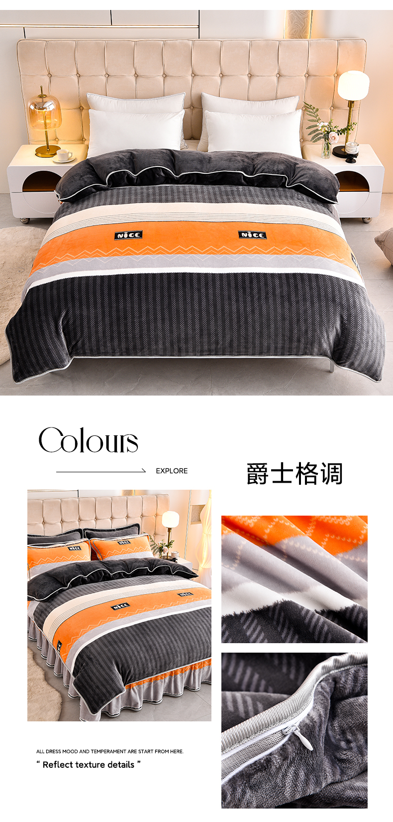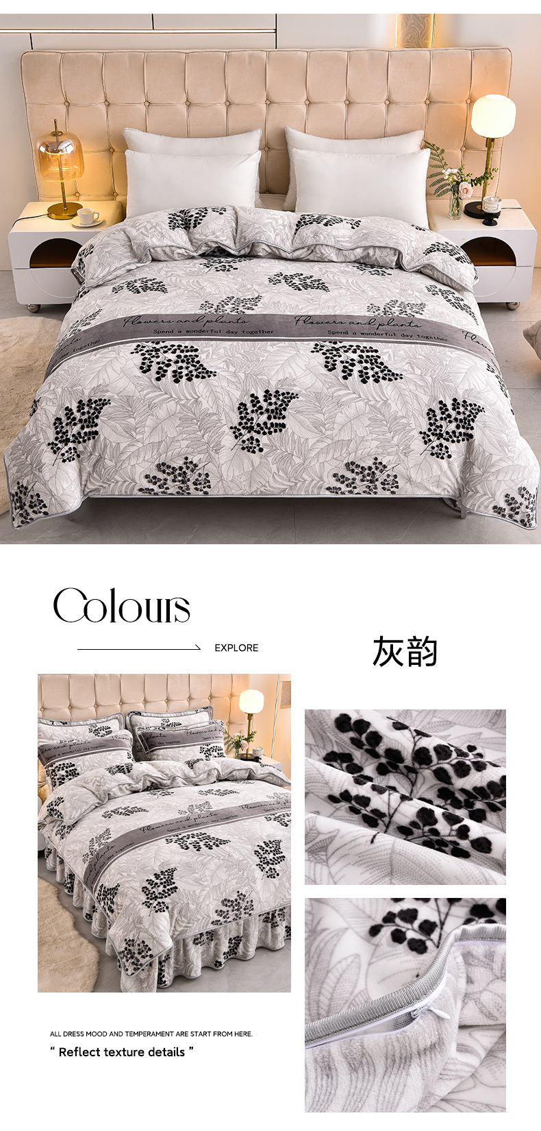当前位置: 91家纺网 > 商品网购 > 床上用品 > 被套 > 博兰蒂 2025新款床裙款高克重牛奶绒印花单被套 爵士格调