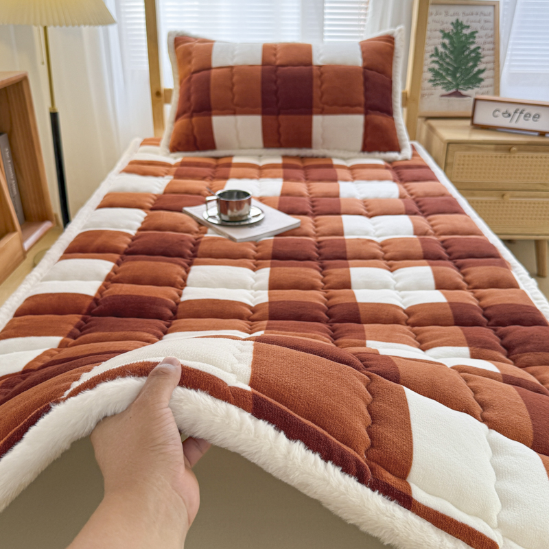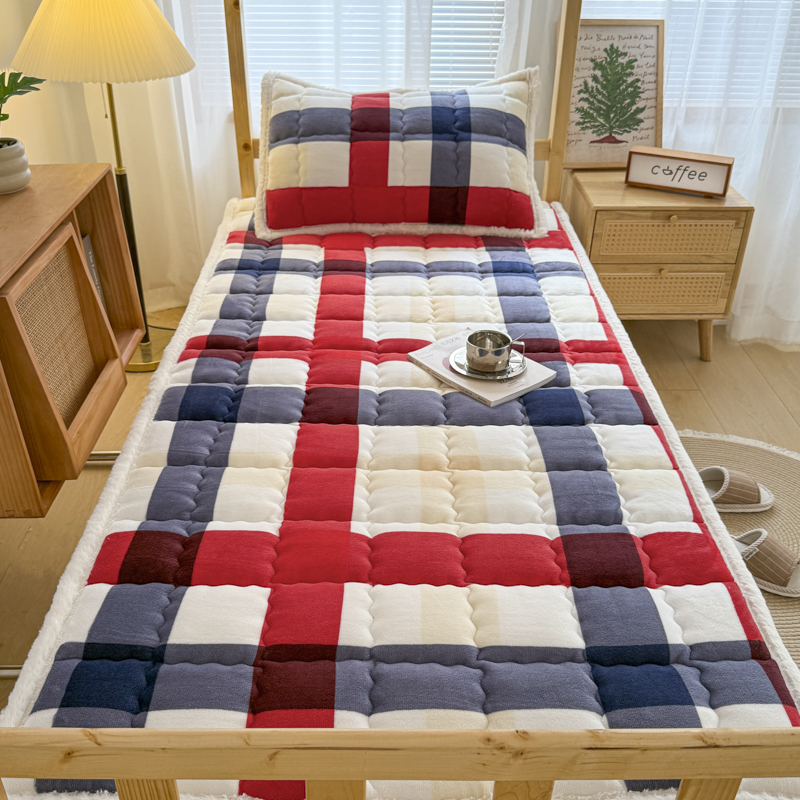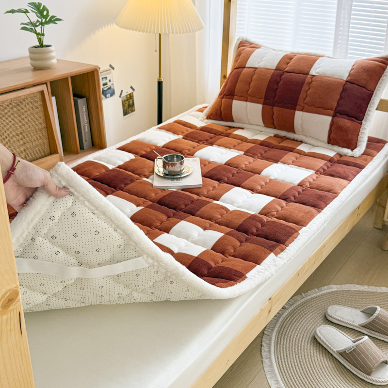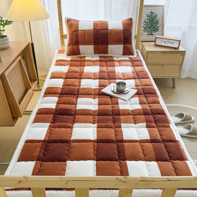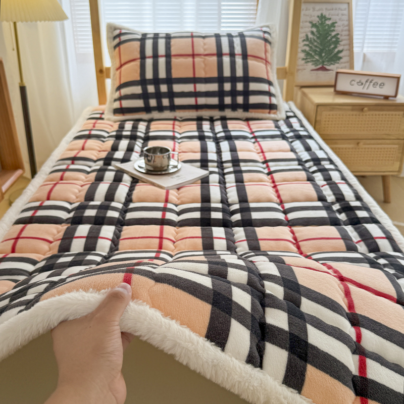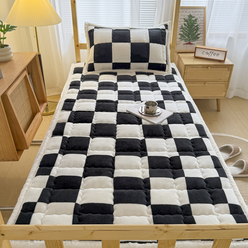 迪梦思家纺 2025新款A类牛奶绒无印风格子床褥床护垫学生床垫--学生床图 平铺款-钢琴格