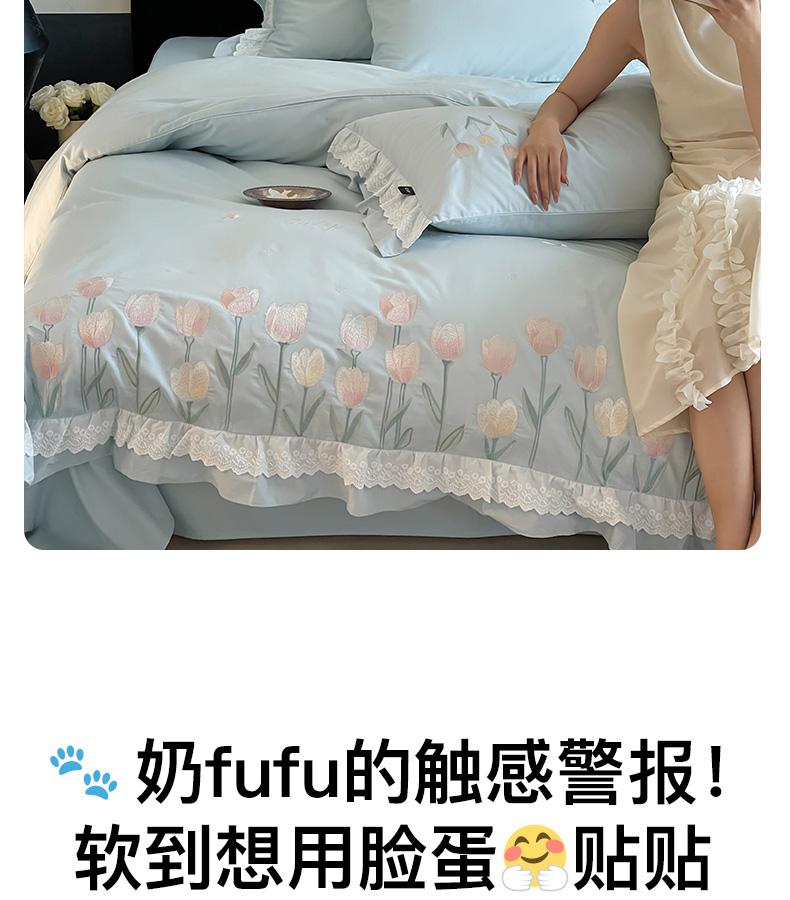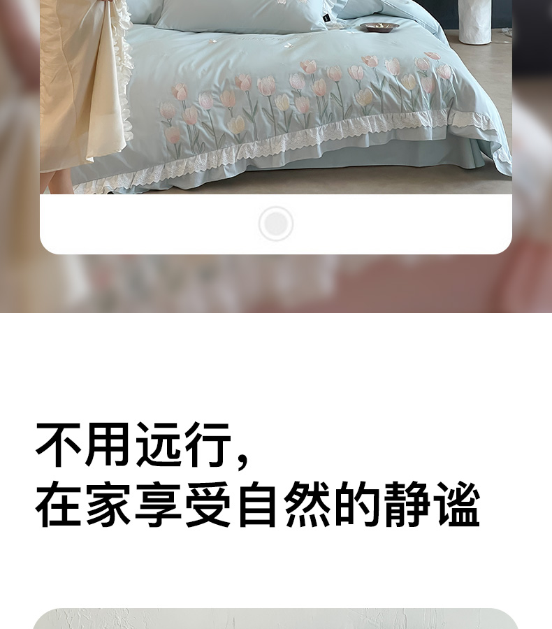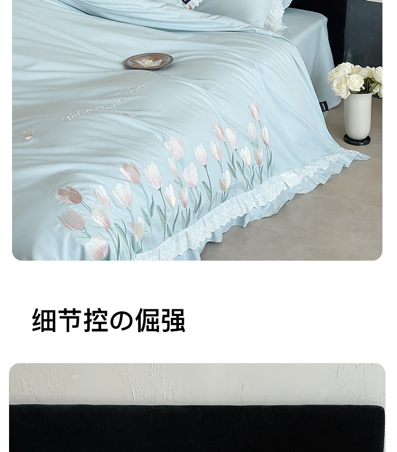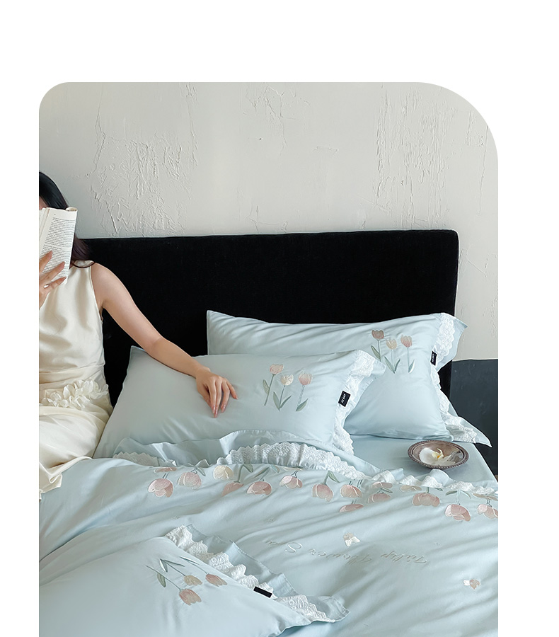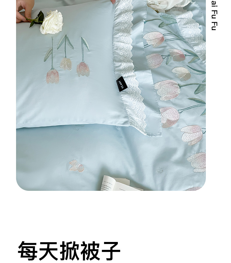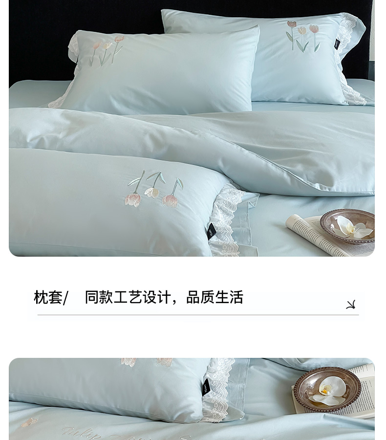 商品名称:卡姿家纺 2025秋冬森系小清新简约刺绣四件套-森系郁金香 森系郁金香-蓝