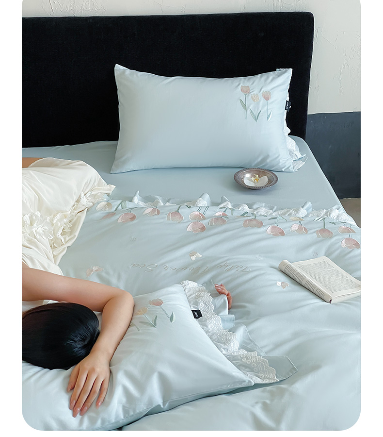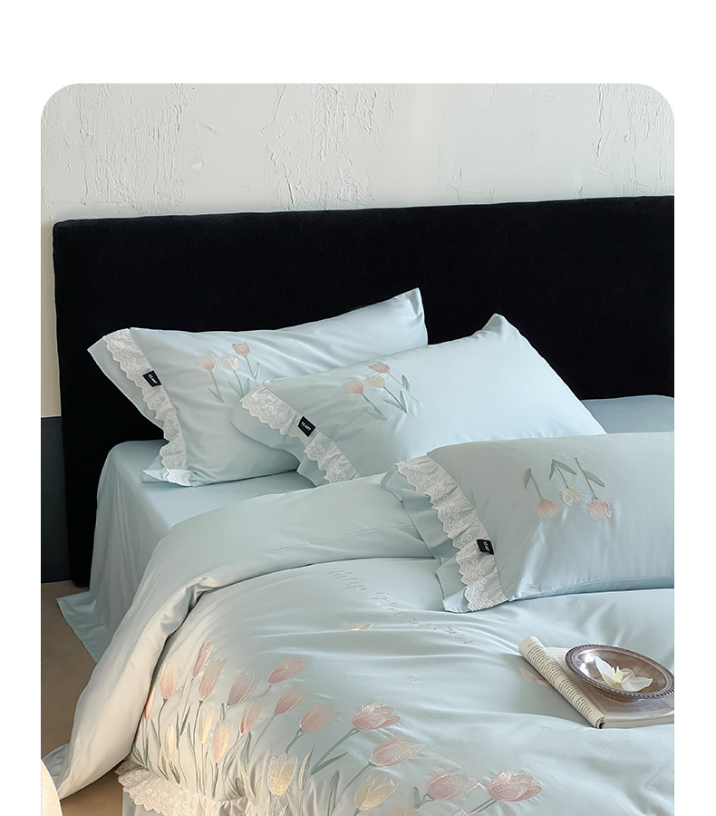 卡姿家纺 2025秋冬森系小清新简约刺绣四件套-森系郁金香 森系郁金香-蓝