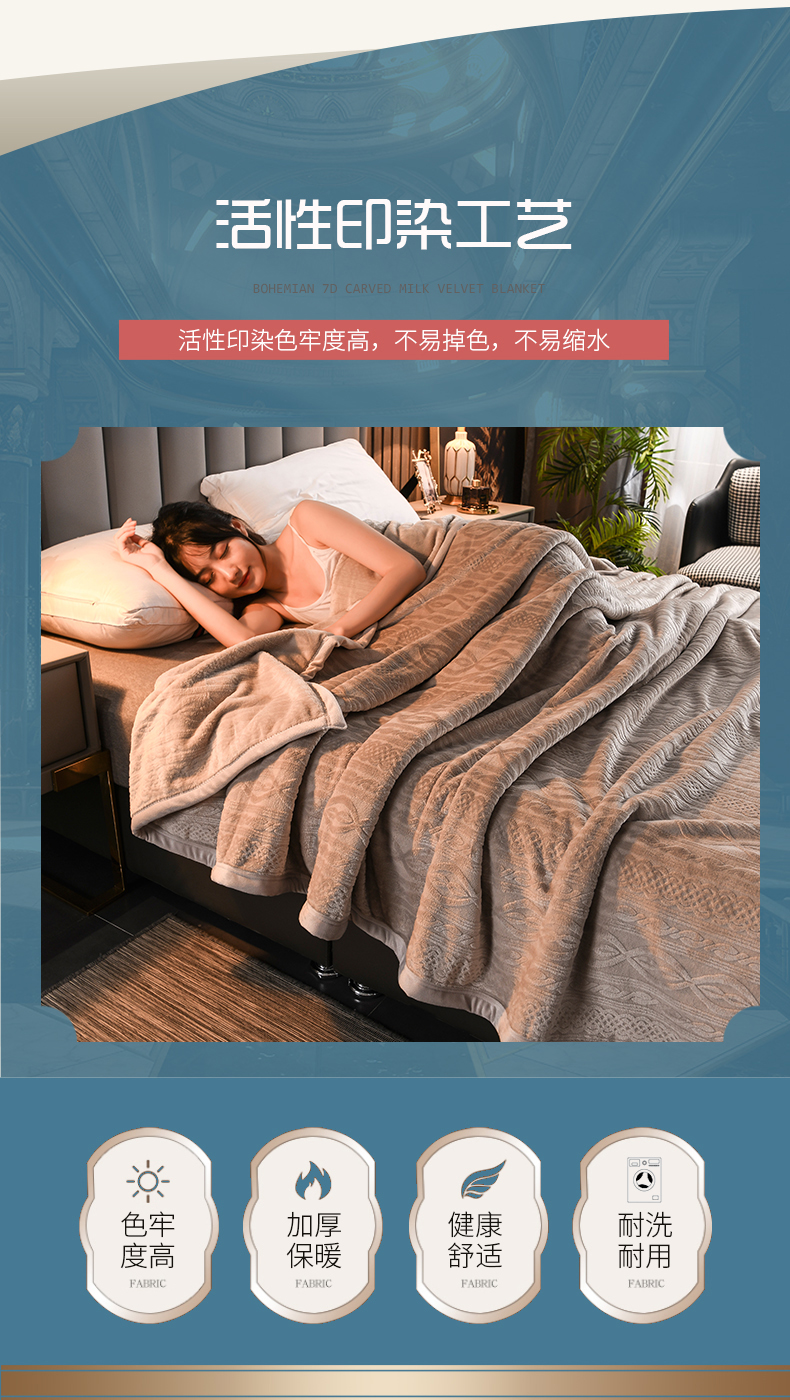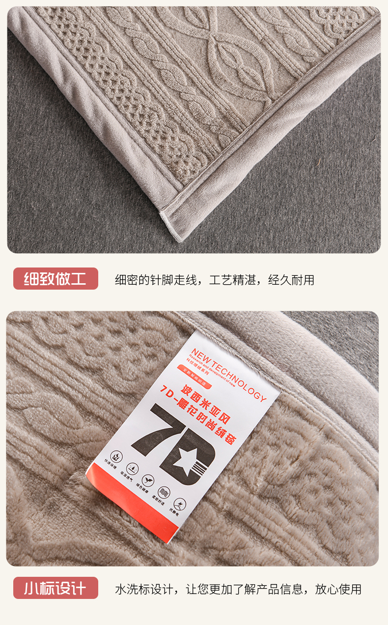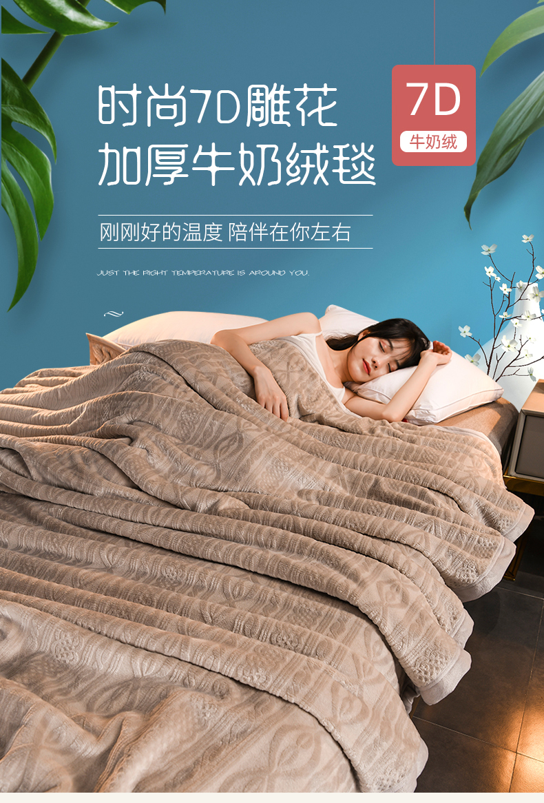 小牛席业 2025新款7D雕花牛奶绒毛毯 米色