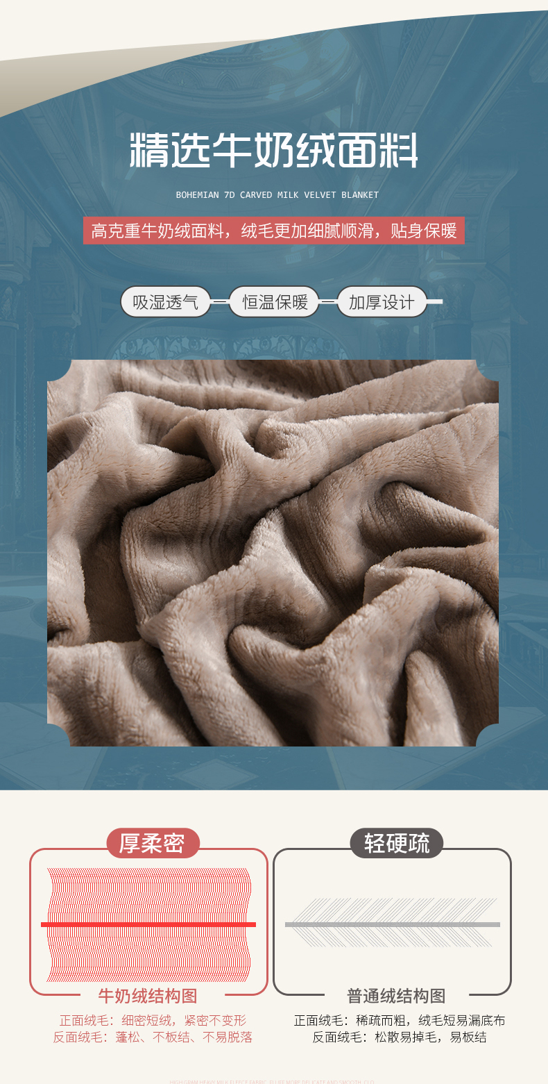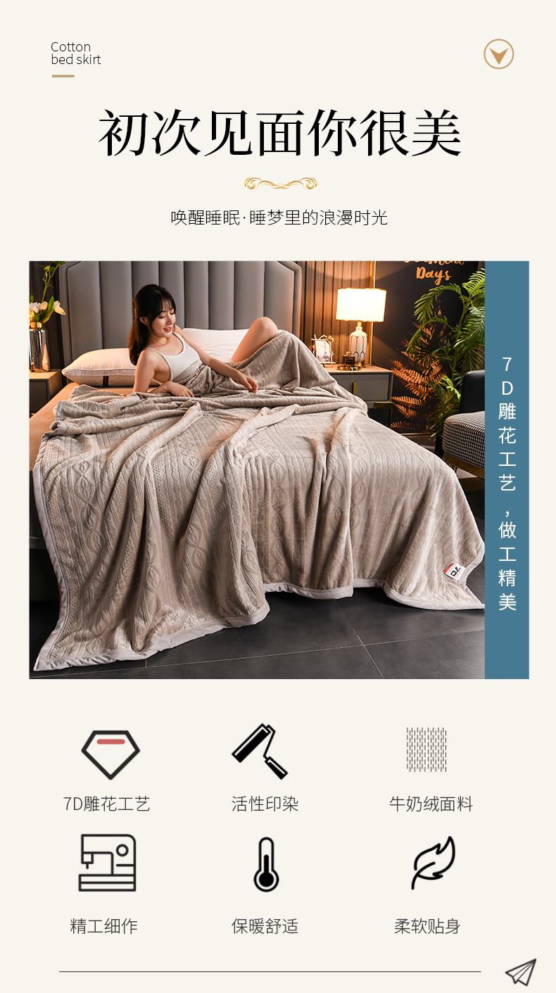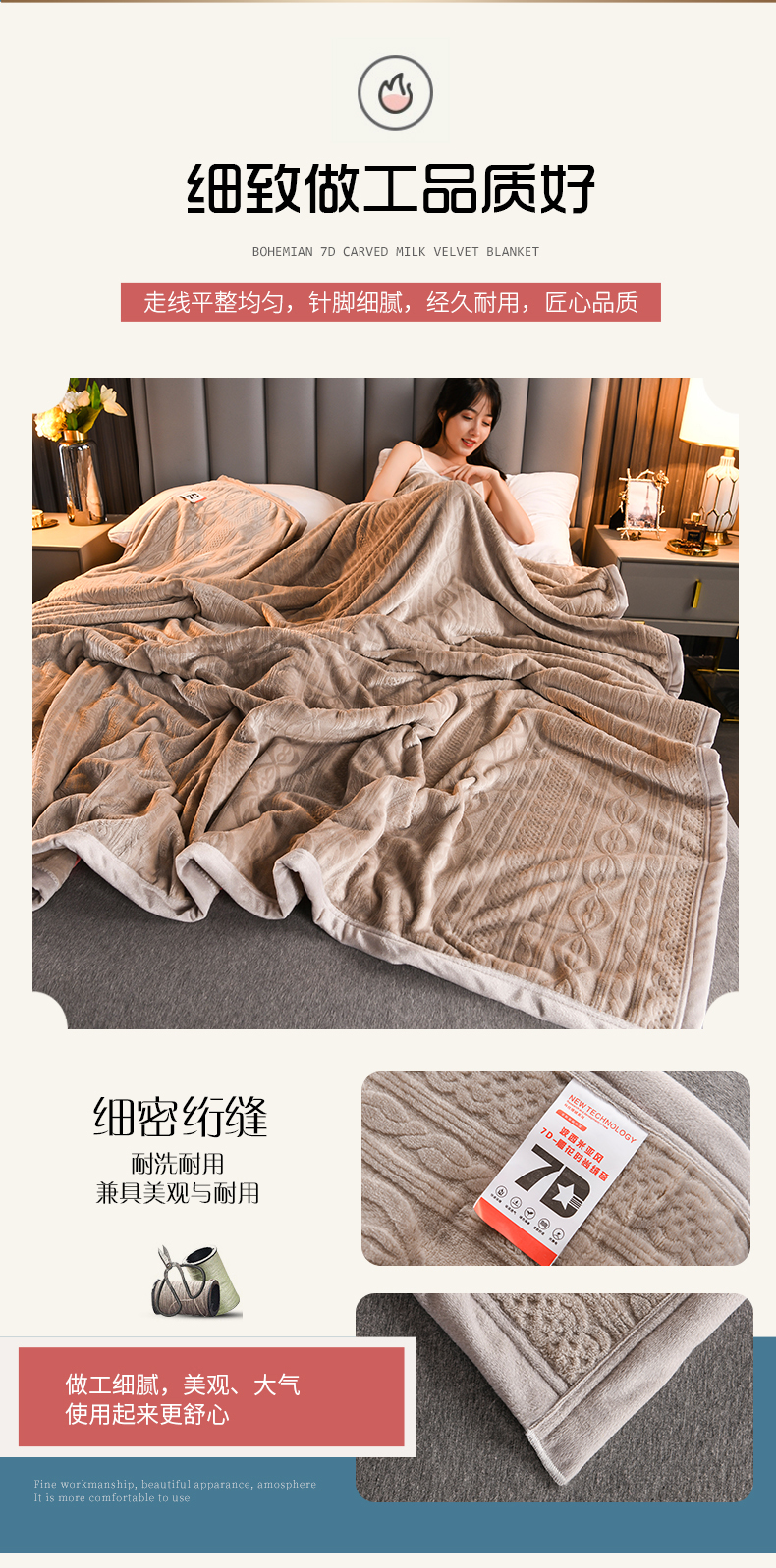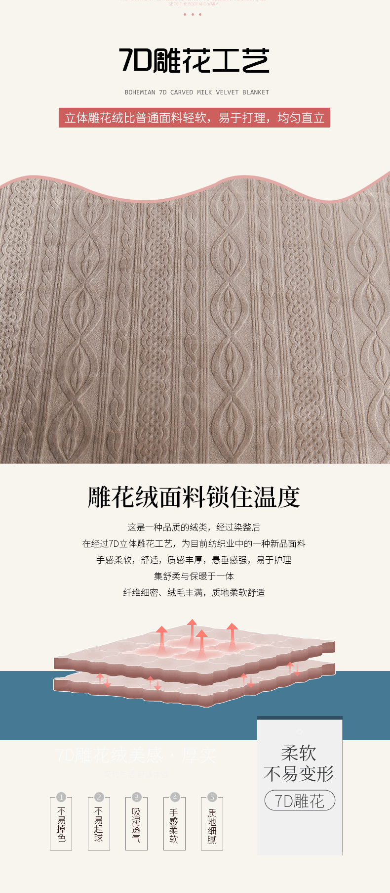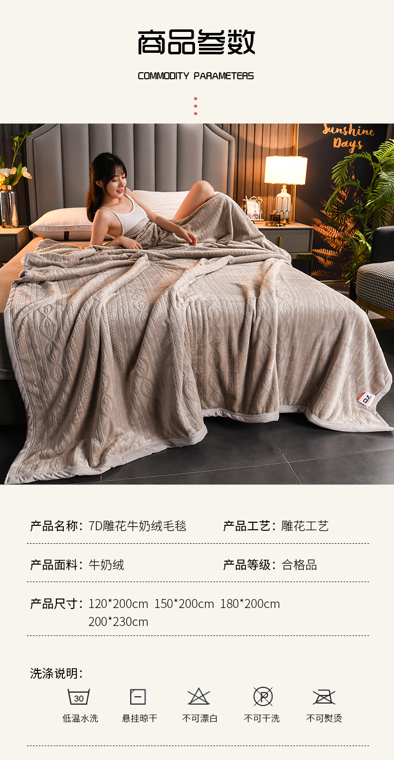 商品名称:小牛席业 2025新款7D雕花牛奶绒毛毯 米色