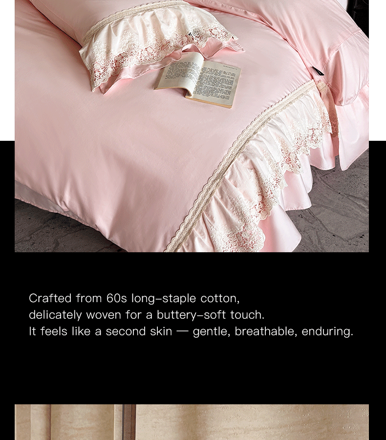 商品名称:(总)卡姿家纺 2025秋冬60支长绒棉法式蕾丝花边四件套-凯瑟琳
