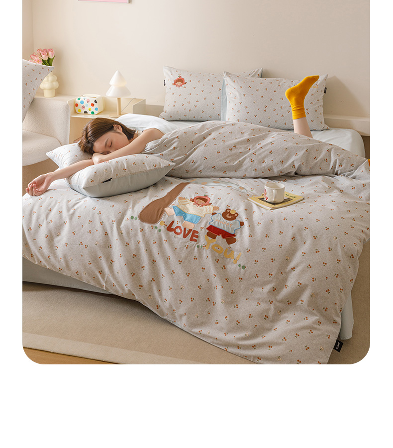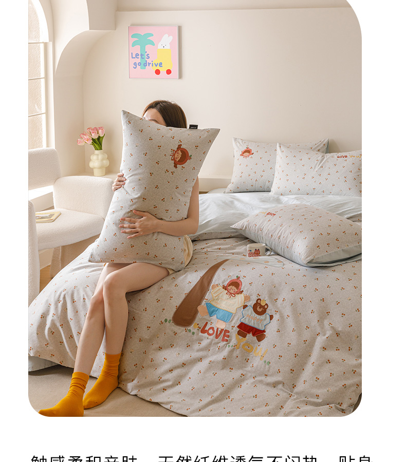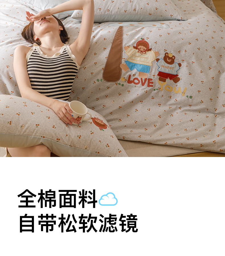 商品名称:卡姿家纺 2025秋冬治愈系卡通萌趣系列四件套第二季 樱桃树下