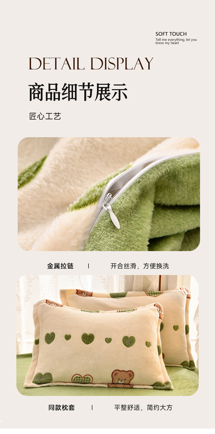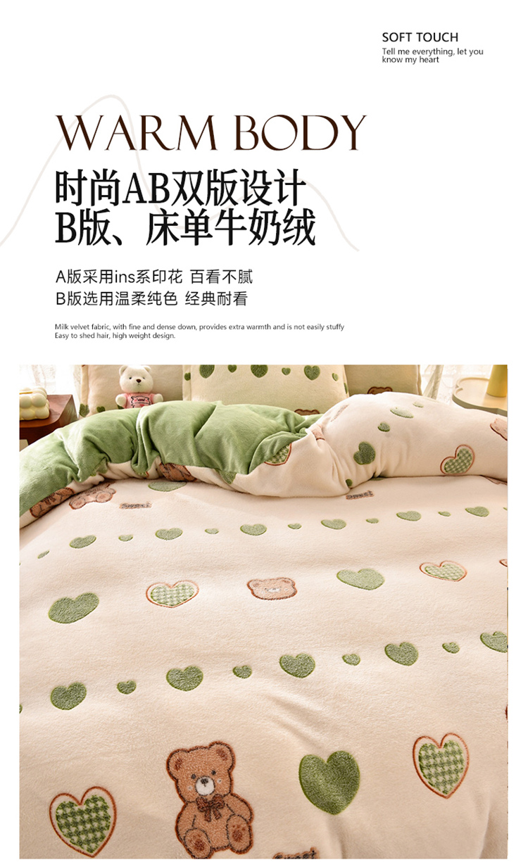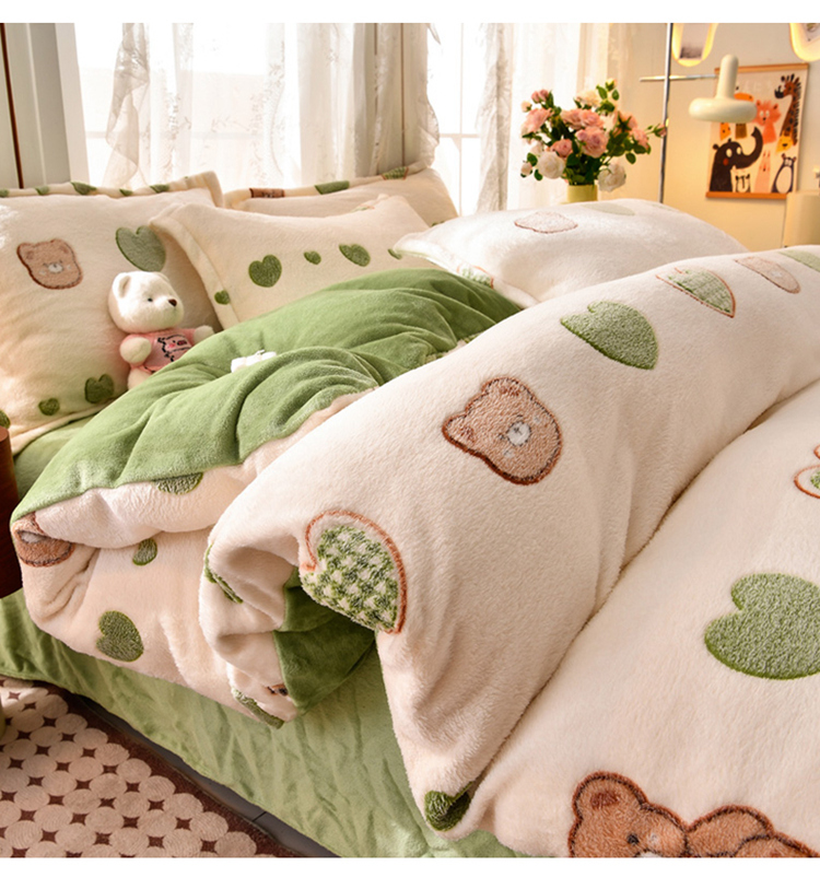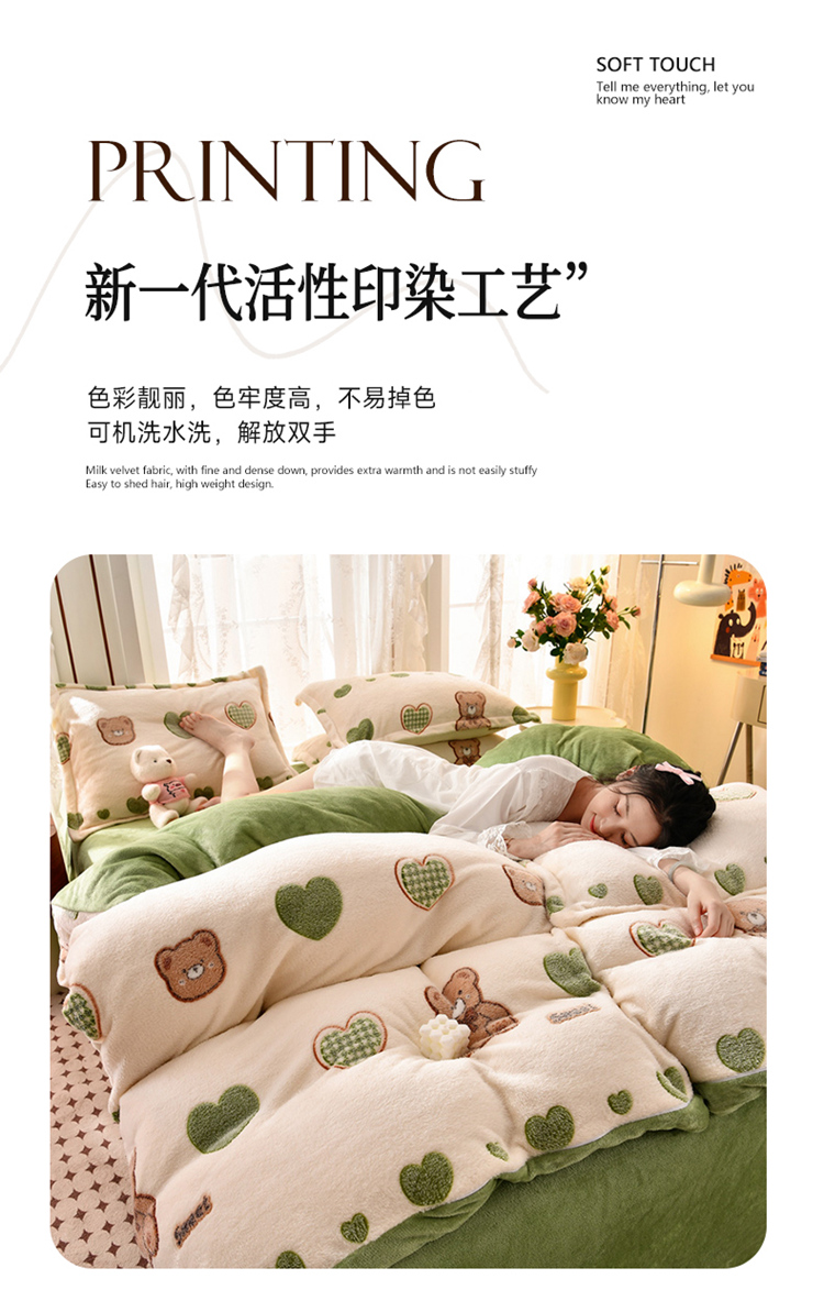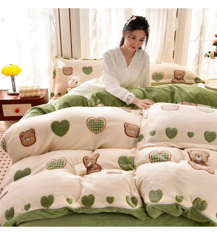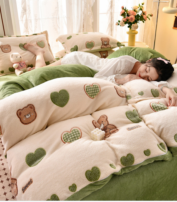 当前位置: 91家纺网 > 商品网购 > 床品套件 > 四件套 > 其它四件套 > 牵梦萦 2025新款雪花绒小清新印花四件套 心动小熊
