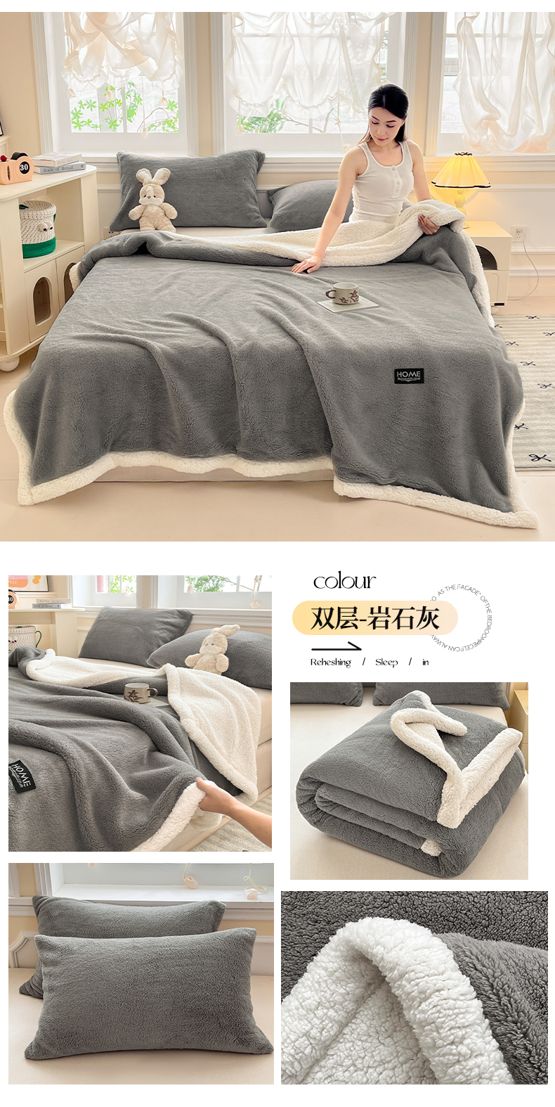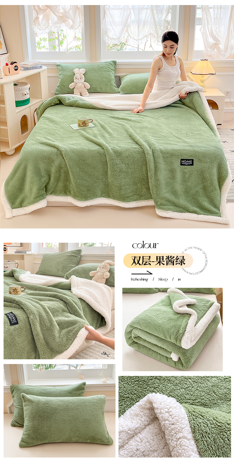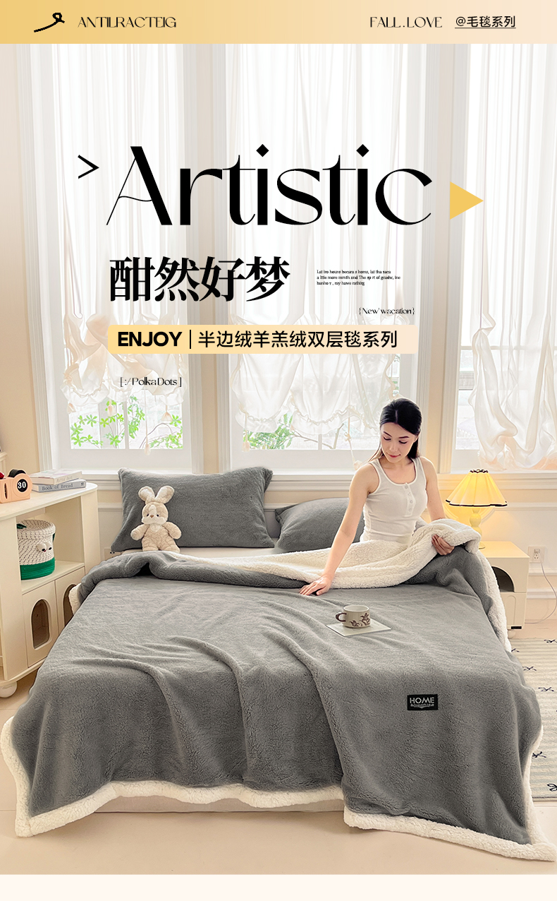 (总)欧邦 2025新款提花暖阳绒羊羔绒毛毯多功能盖毯-梦境系列,梦境-粉玉,梦境-幻白,梦境-米驼,梦境-桑绿,梦境-雾灰