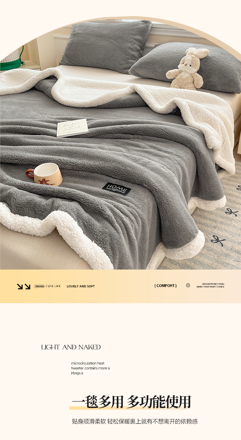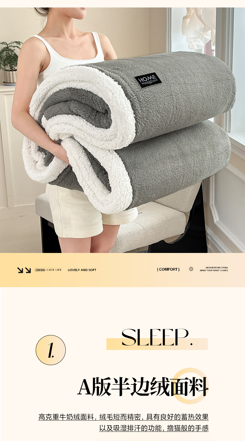 商品名称:(总)欧邦 2025新款A类舒棉半边绒羊羔绒双层毛毯跨境