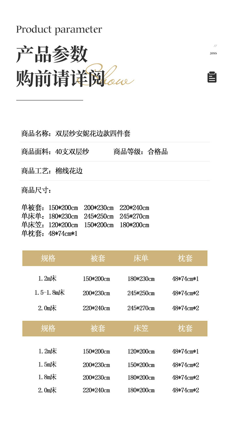 【床笠款】1.5四件套-被套200x230 | ¥205.00 |