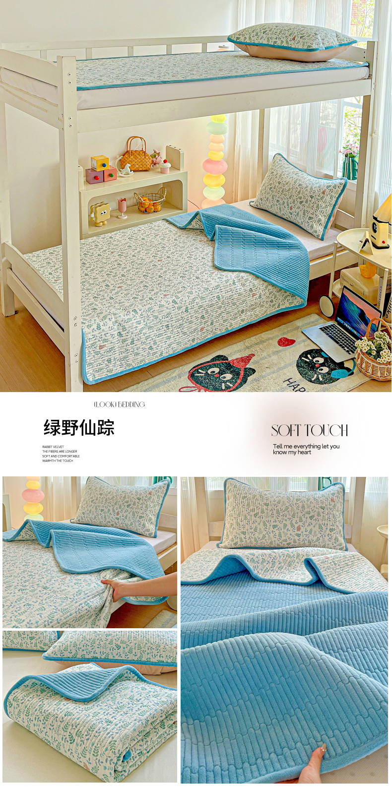 • 91家纺网 家纺一手货源 找家纺 恒尚居 2025新款学生床盖纯棉牛奶绒正反两用夹棉床单床垫-秋冬款-四季通用【系列一】 简格调【A纯棉-B宝宝绒】