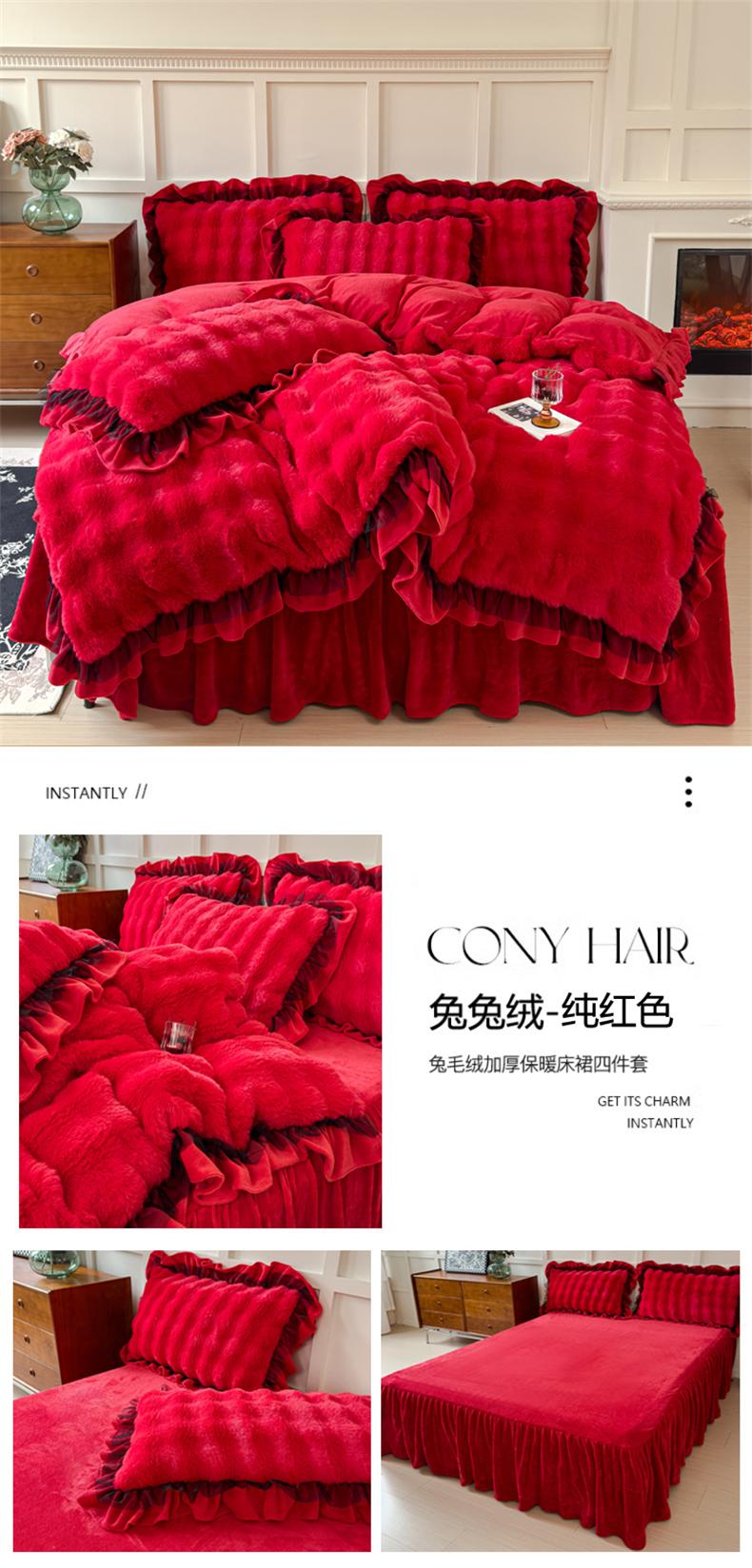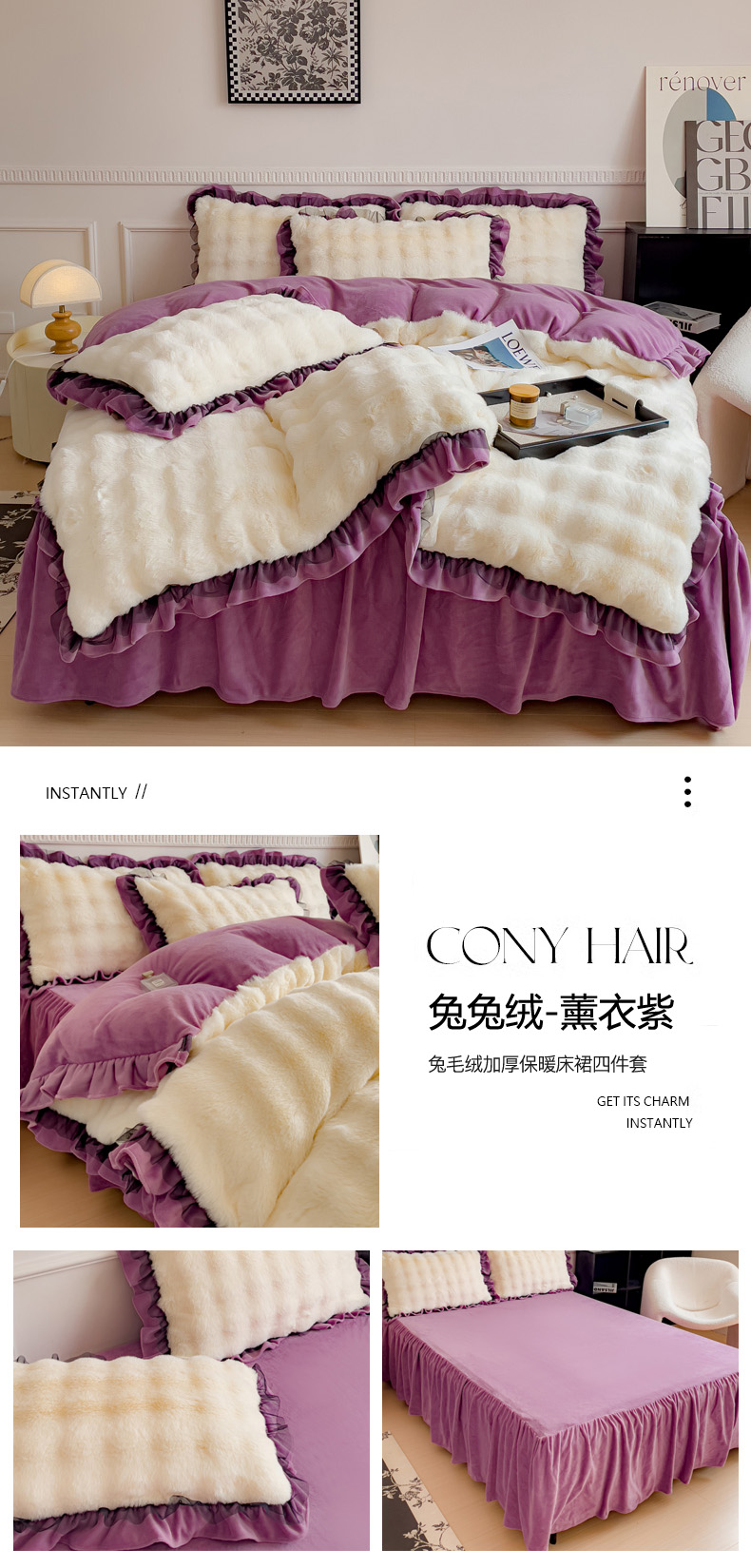 商品名称:(总)睡美人 2025韩版兔兔绒牛奶绒床裙床单床笠款公主蕾丝四件套