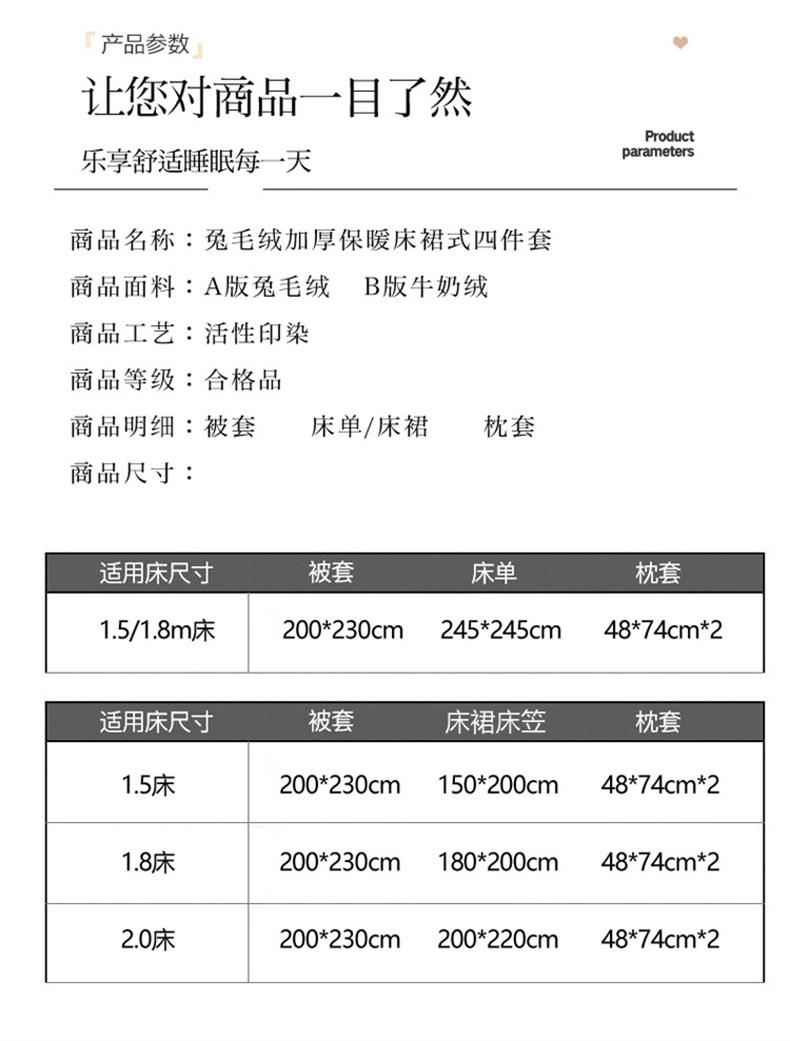 1.8m床笠款四件套被套2.0*2.3 | ¥160.00 |