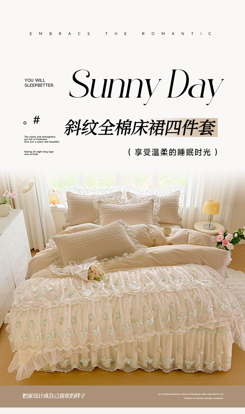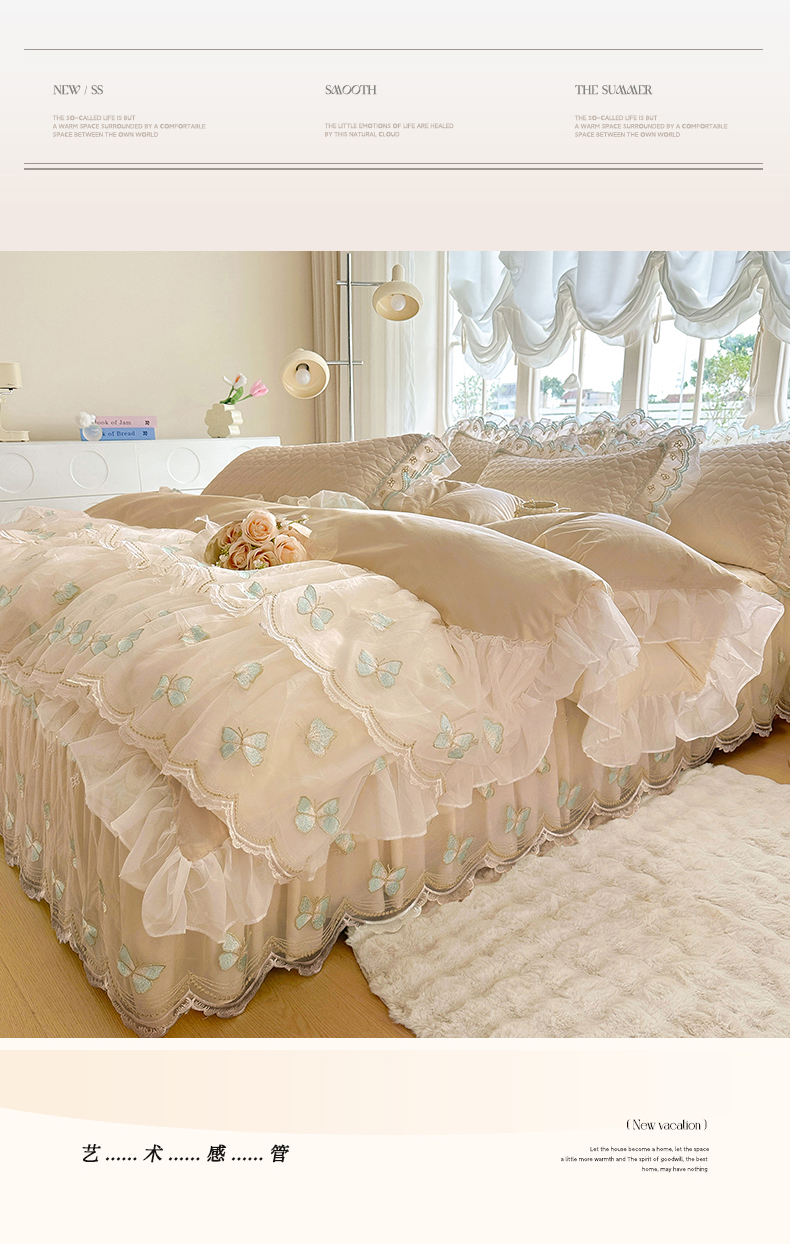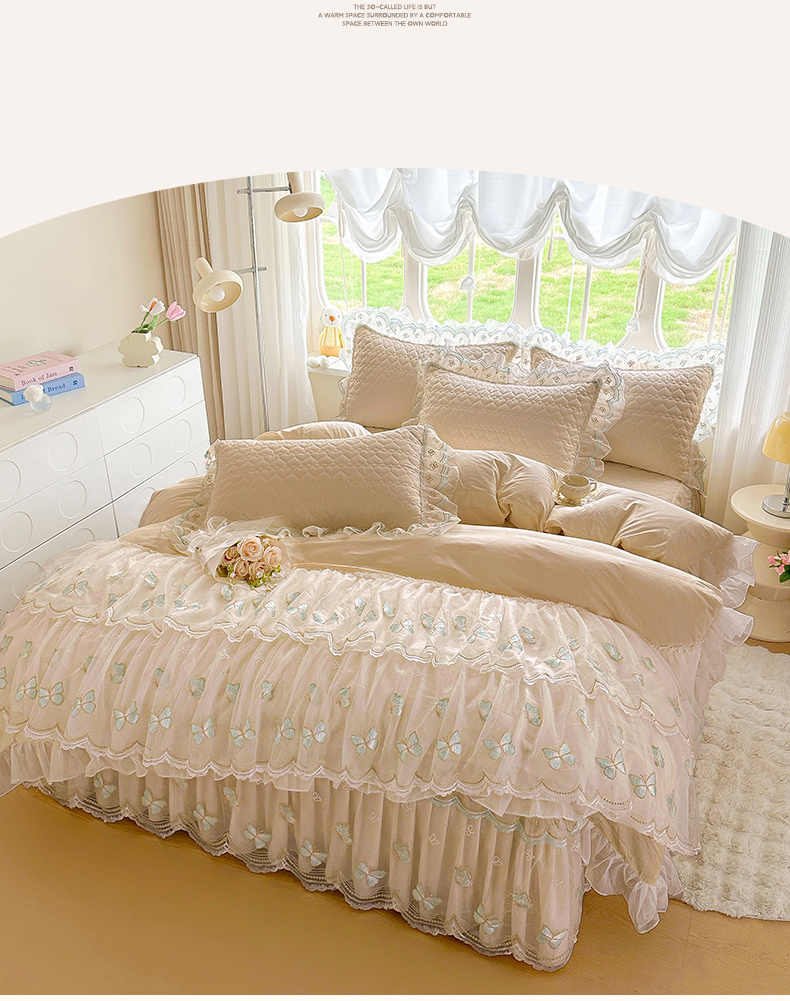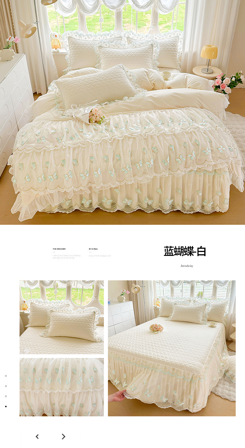当前位置: 91家纺网 > 商品网购 > 床品套件 > 四件套 > 其它四件套 > 罗艺轩 2025新款全棉纯棉斜纹工艺床裙四件套 蓝蝴蝶-咖色