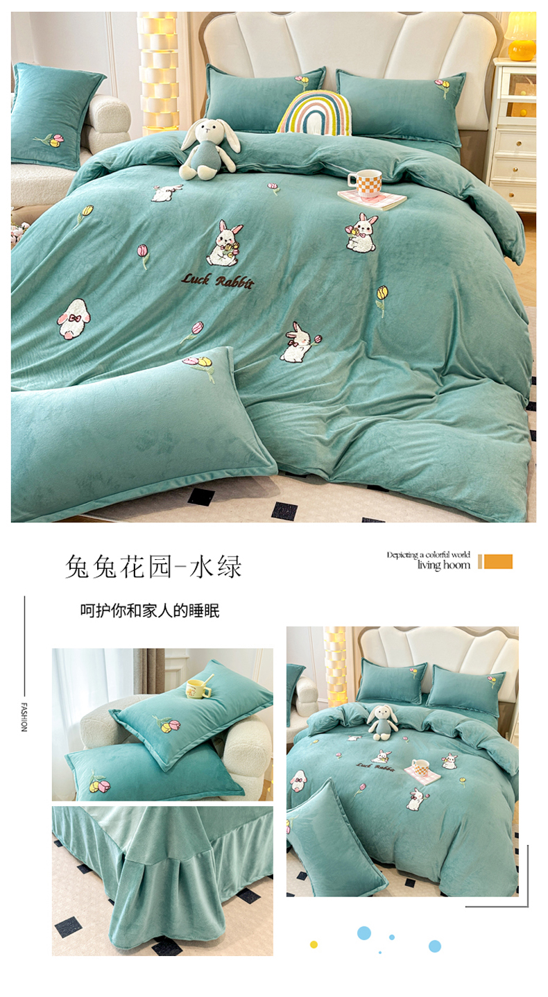 商品名称:提花大世界 2025新款宝宝绒绣花款牛奶绒婴儿绒保暖四件套 兔兔花园-深豆沙