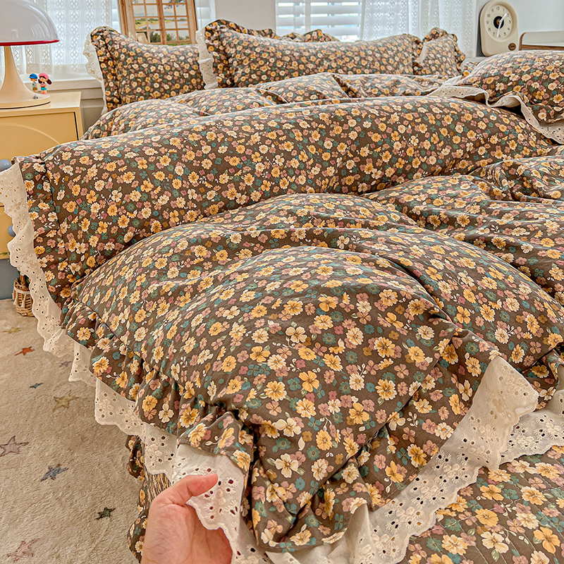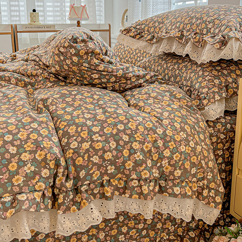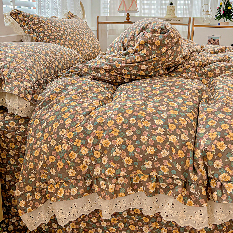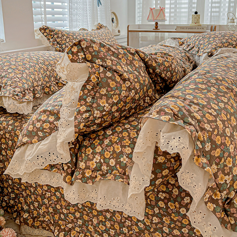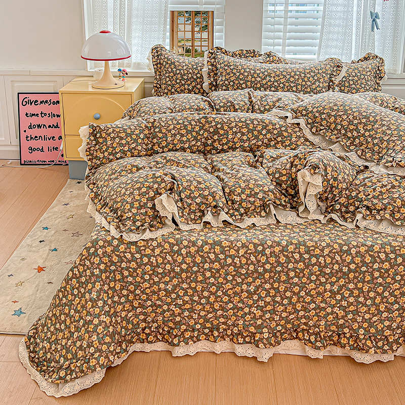 梦莱斯 2025新款田园碎花纯棉花边四件套-床盖款 糜花似锦