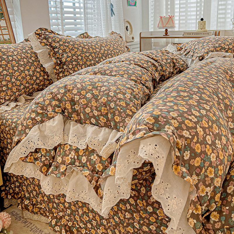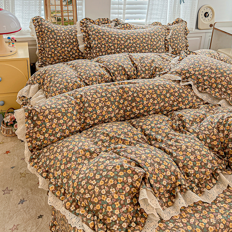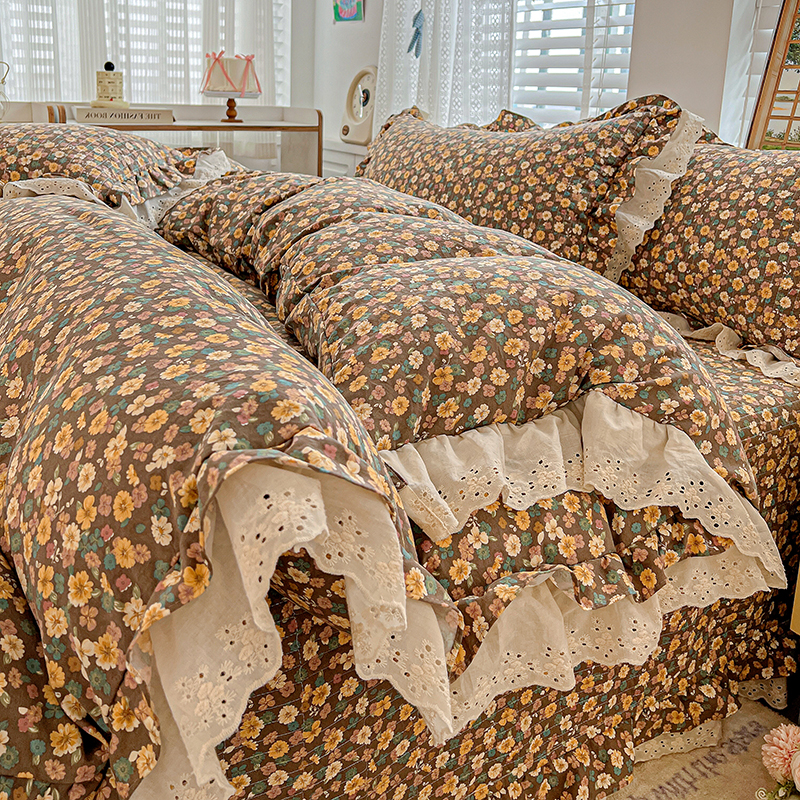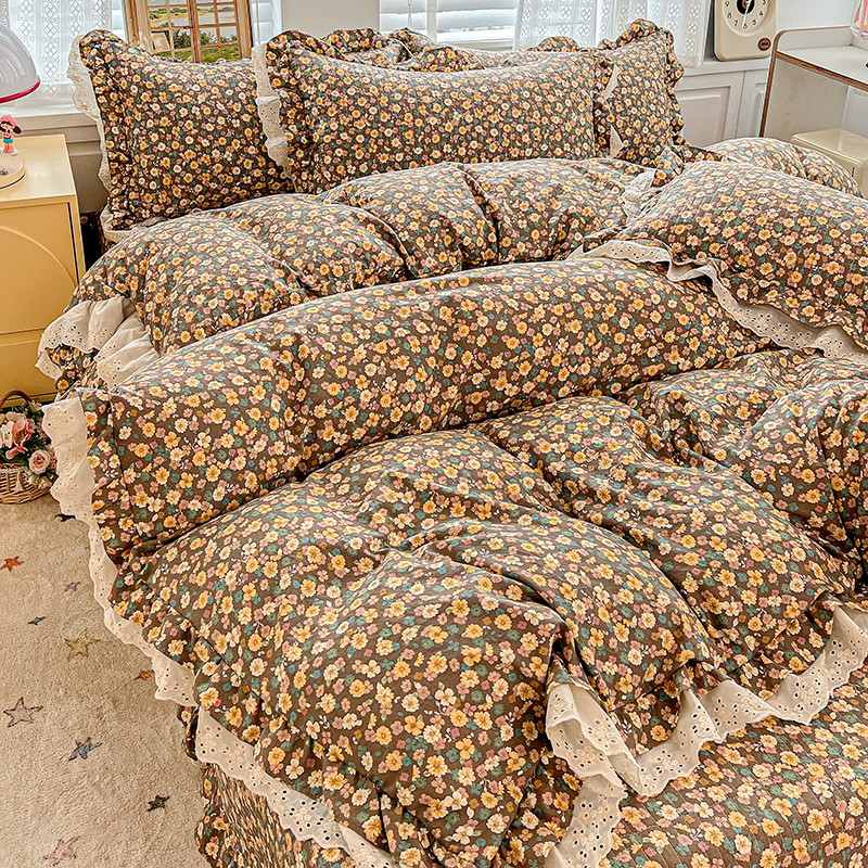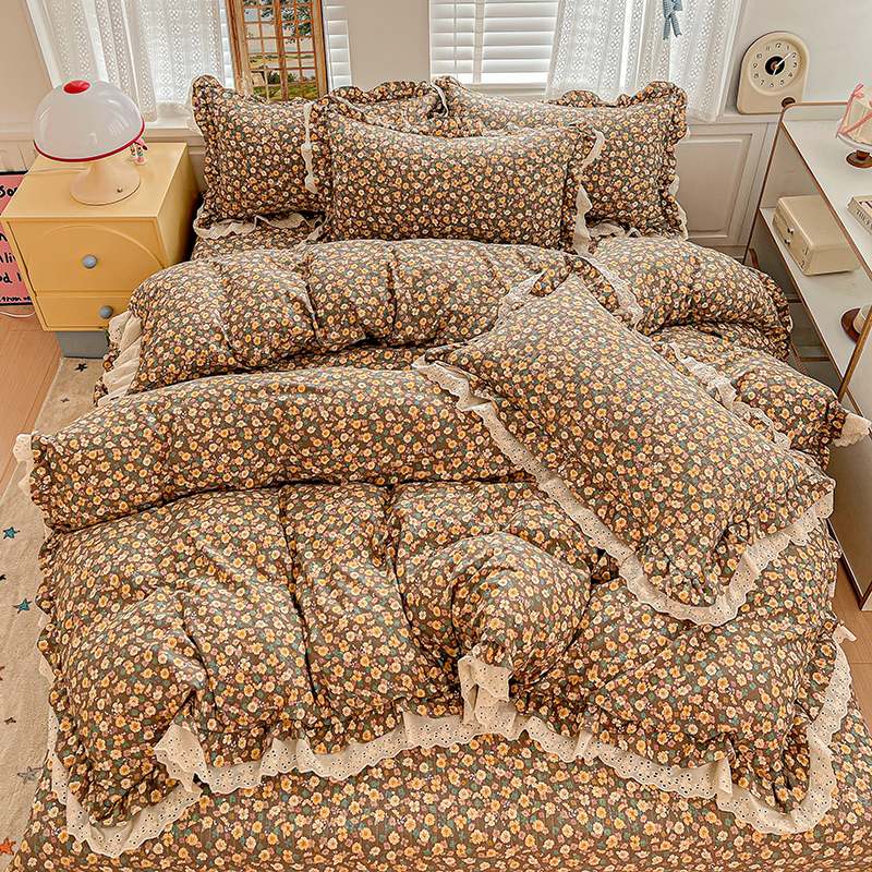 梦莱斯 2025新款田园碎花纯棉花边四件套-床盖款 糜花似锦
