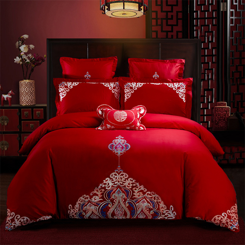 当前位置: 91家纺网 > 商品网购 > 床品套件 > 四件套 > 婚庆四件套 > 布乐意 2025新款全棉长绒棉贡缎提花全工艺喷气重工新中式绣花大红婚庆四件套多件套直播百年相守