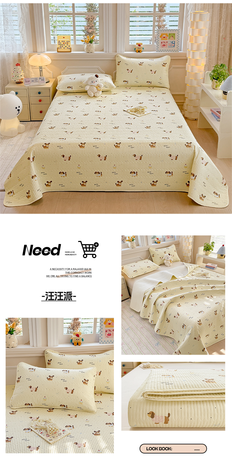 • 91家纺网 家纺一手货源 找家纺 大元 2025新款A类数码印花朴棉夹棉床盖老粗布床盖双面可用 汪汪派