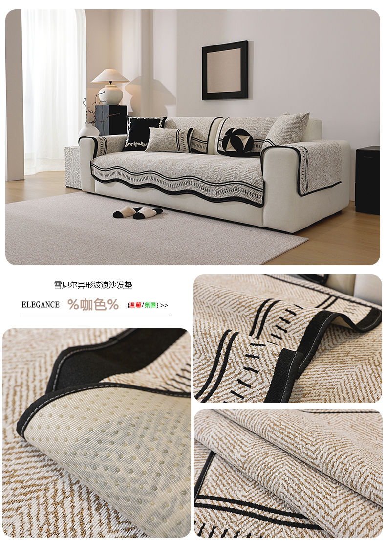 共鸣沙发垫 2025新款雪尼尔异形波浪沙发垫 雪尼尔异形波浪咖色