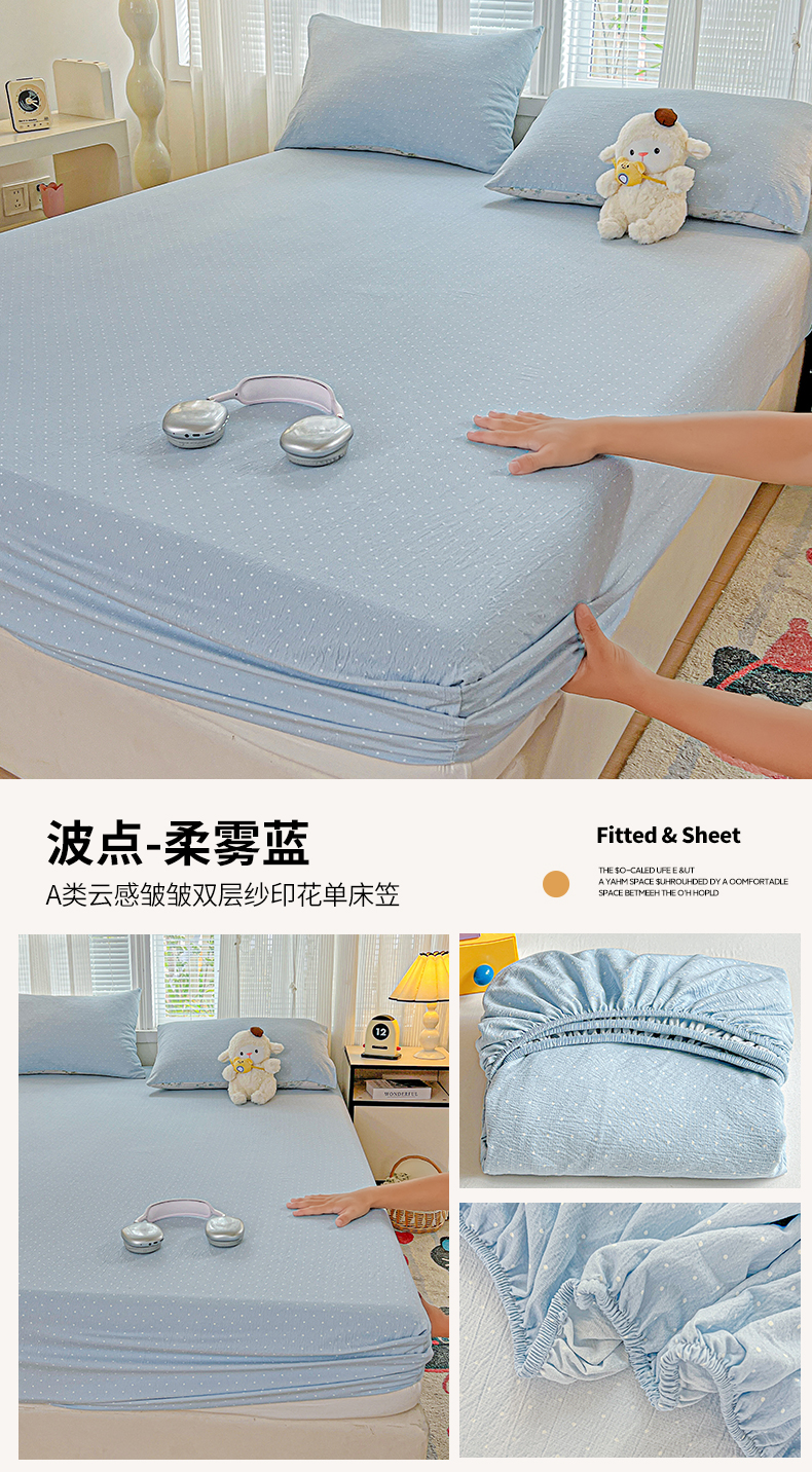 • 91家纺网 家纺一手货源 找家纺 格真 2025秋冬新款110克高克重提花加厚皱皱纱双层纱印花单床笠 波点-奶油黄
