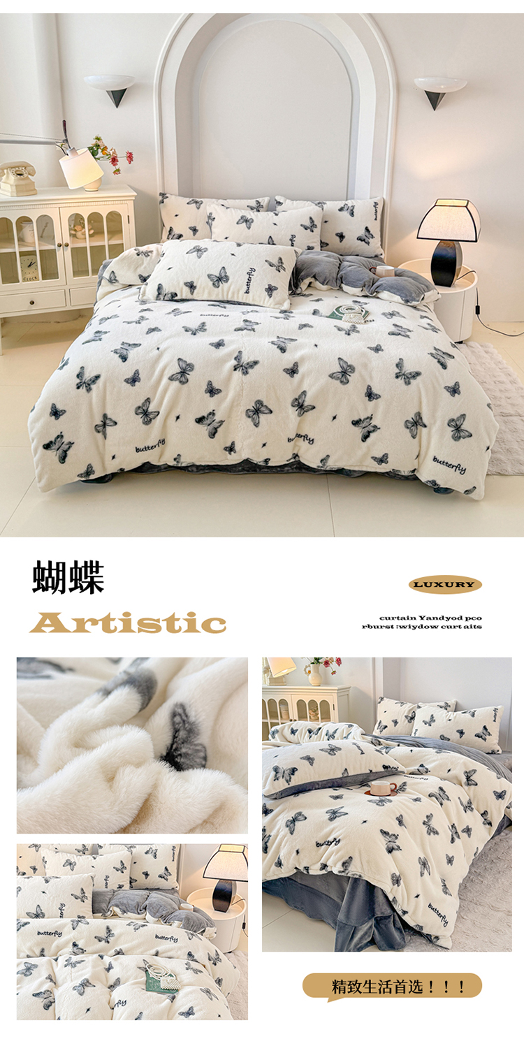 商品名称:橘子家 2025新款轻奢兔绒高克重四件套 蝴蝶
