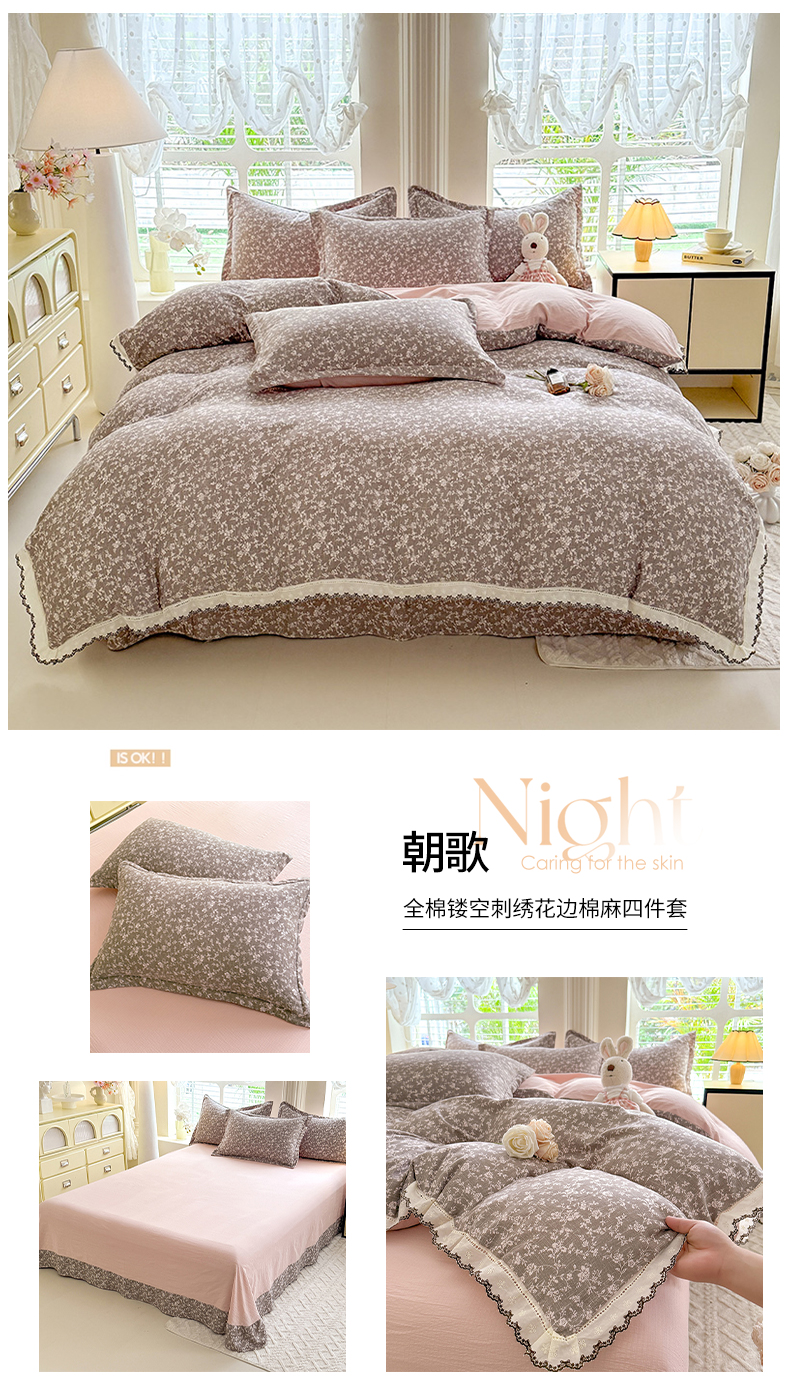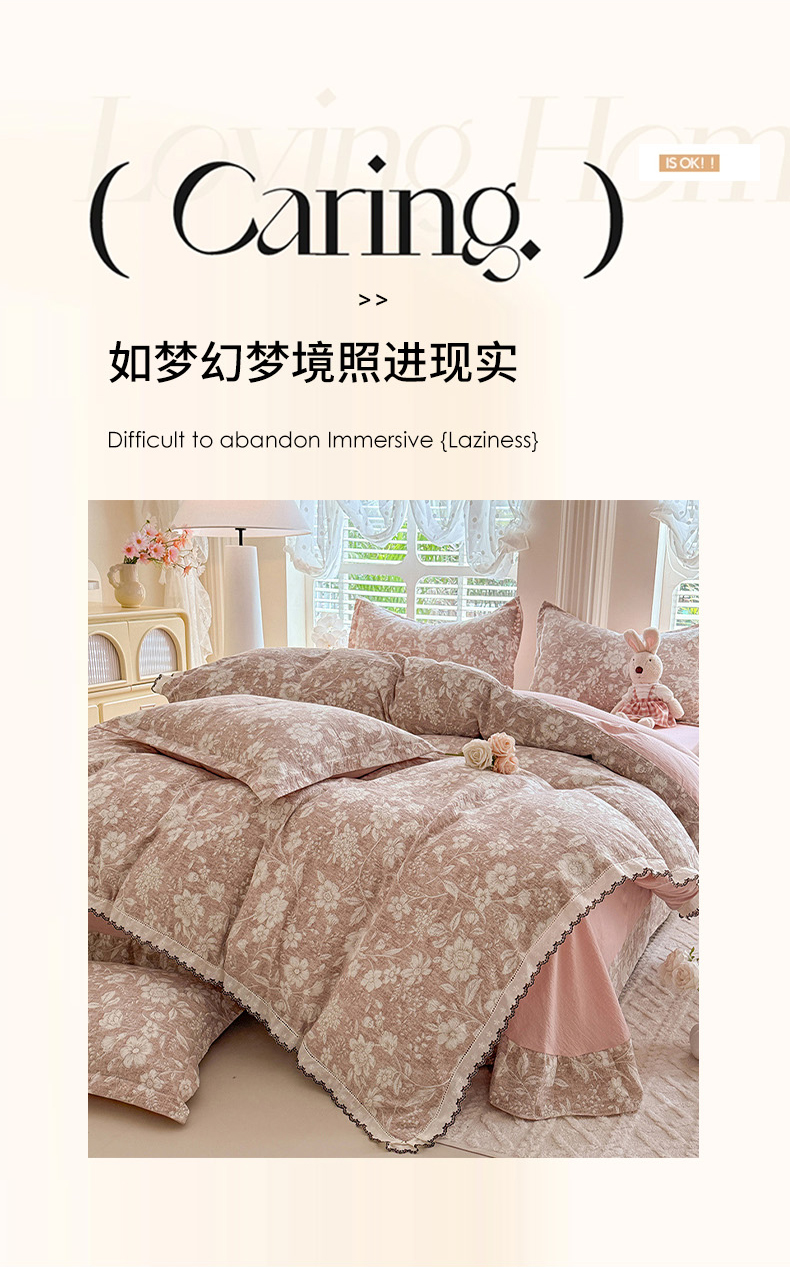 (总)韩约家纺 2026新款韩式花边古法棉感床盖四件套,知否,午后时光,漫花蝶舞,莓莓果,花影,甜心狗,初遇,萝莉,雨沫