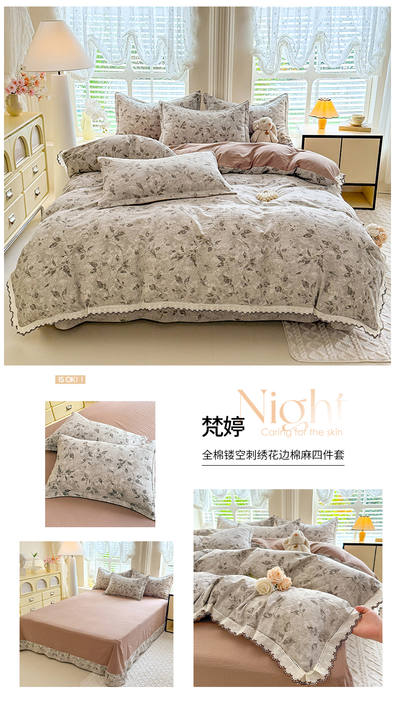 (总)韩约家纺 2026新款法式大花边古法棉感床盖四件套,春熙,宁静时光,紫妍,香兰,思绪,靓彩,艾米,轻颜
