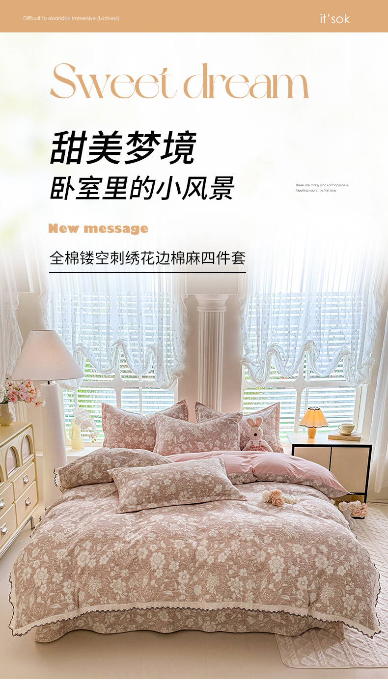 (总)韩约家纺 2026新款法式大花边古法棉感床盖四件套,春熙,宁静时光,紫妍,香兰,思绪,靓彩,艾米,轻颜