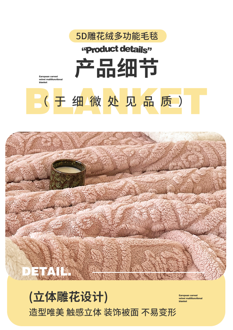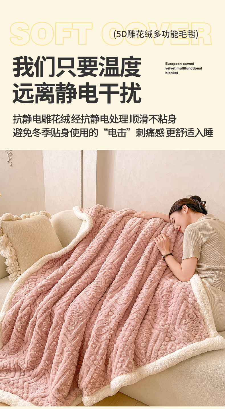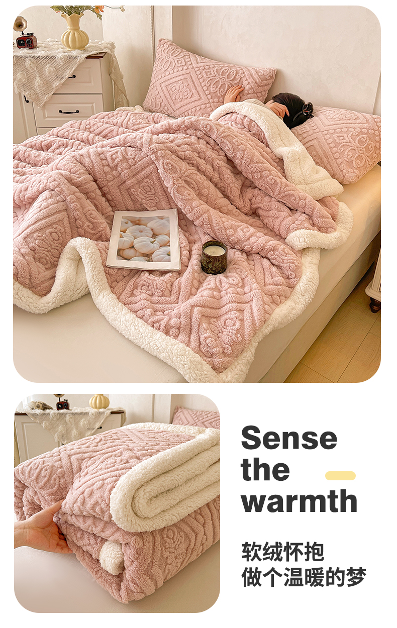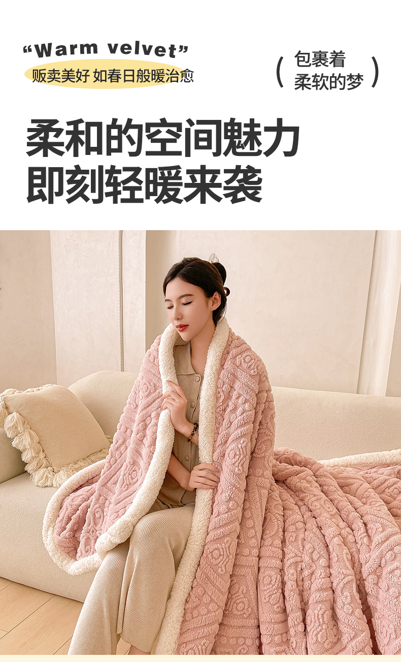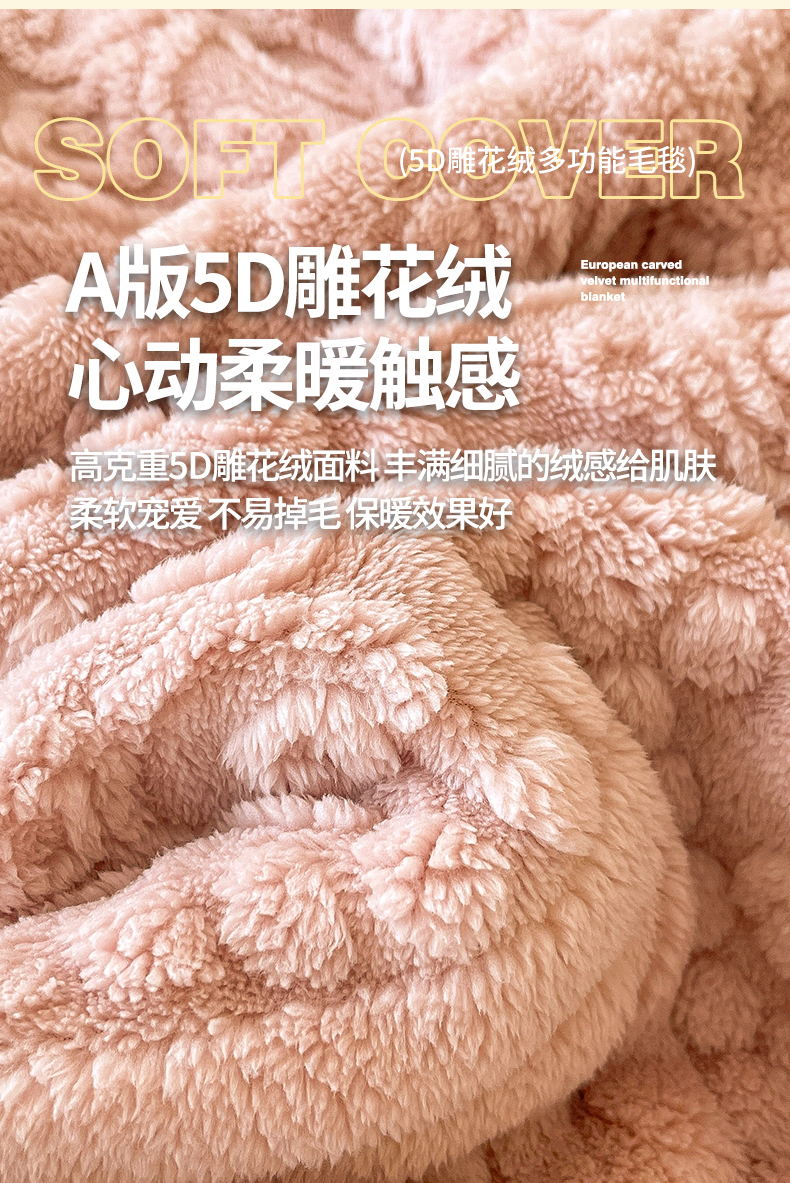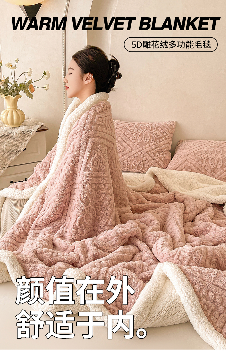 商品名称:世纪绒品 2025新款5D雕花毛毯 樱花粉
