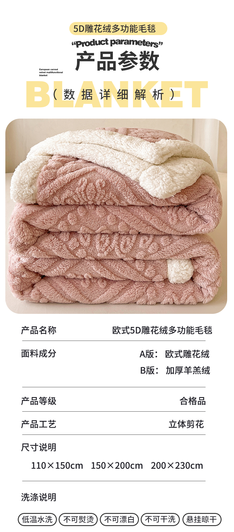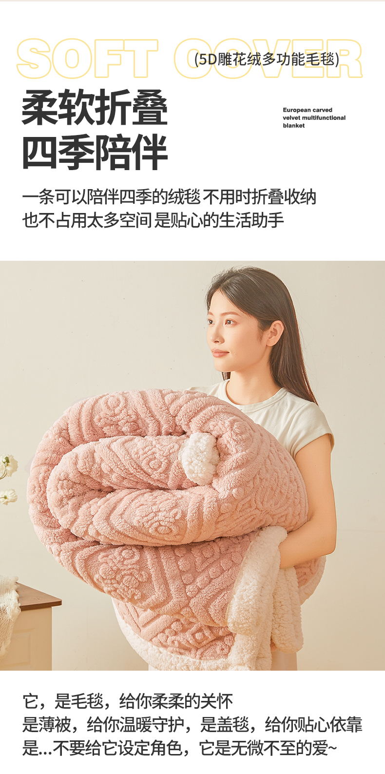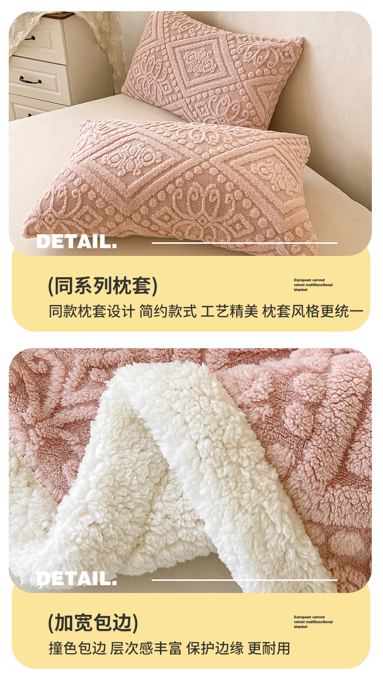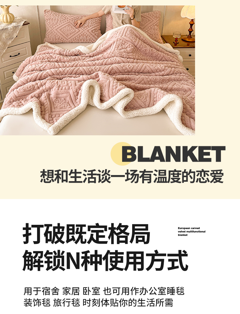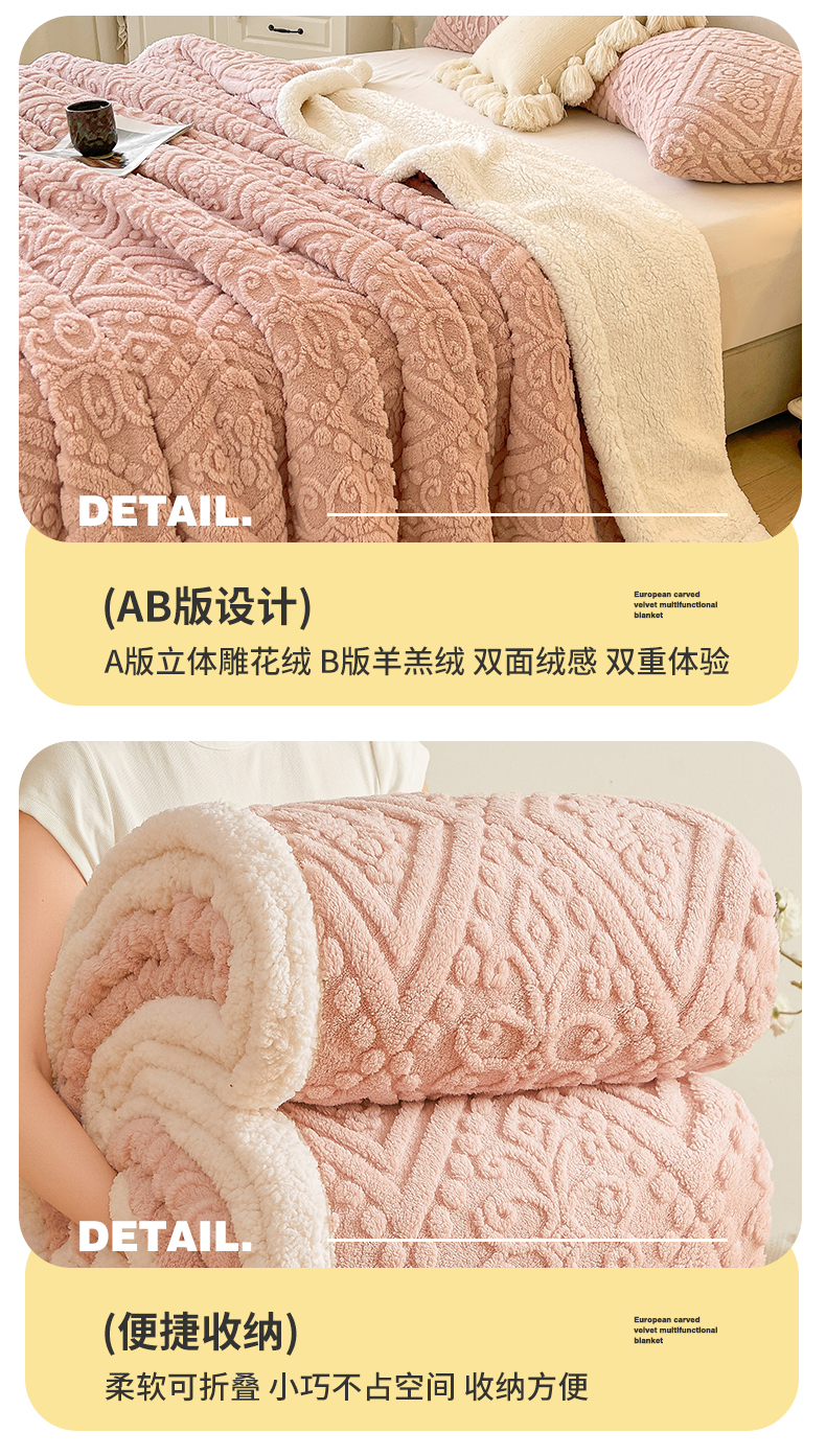 商品名称:世纪绒品 2025新款5D雕花毛毯 樱花粉