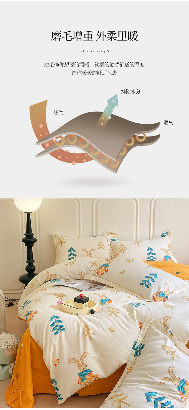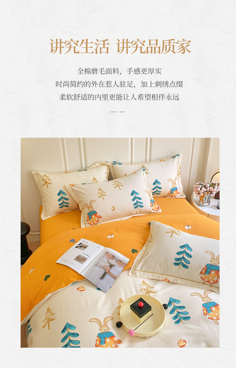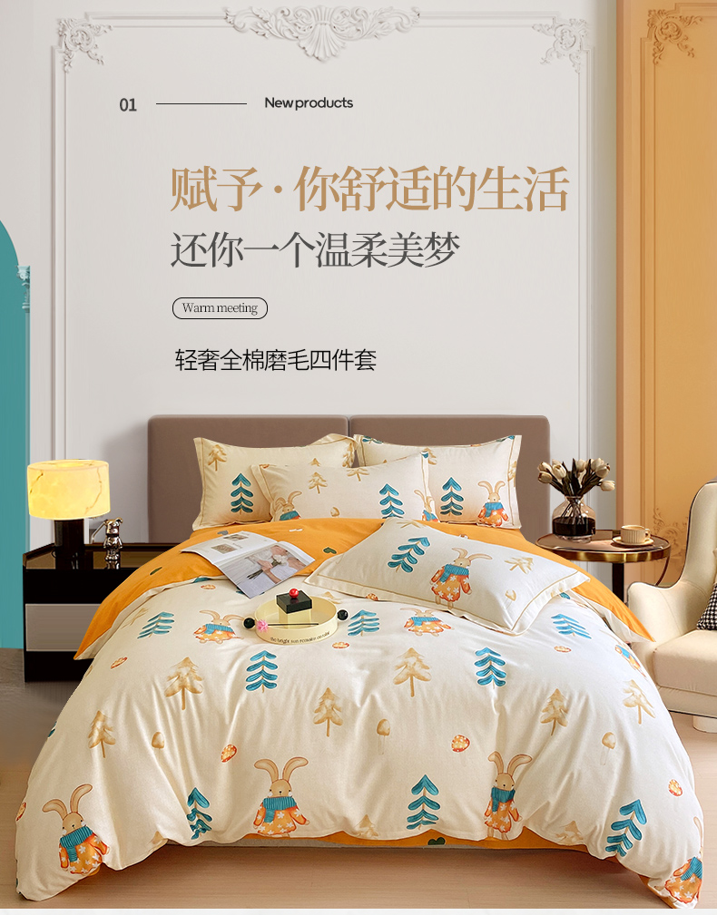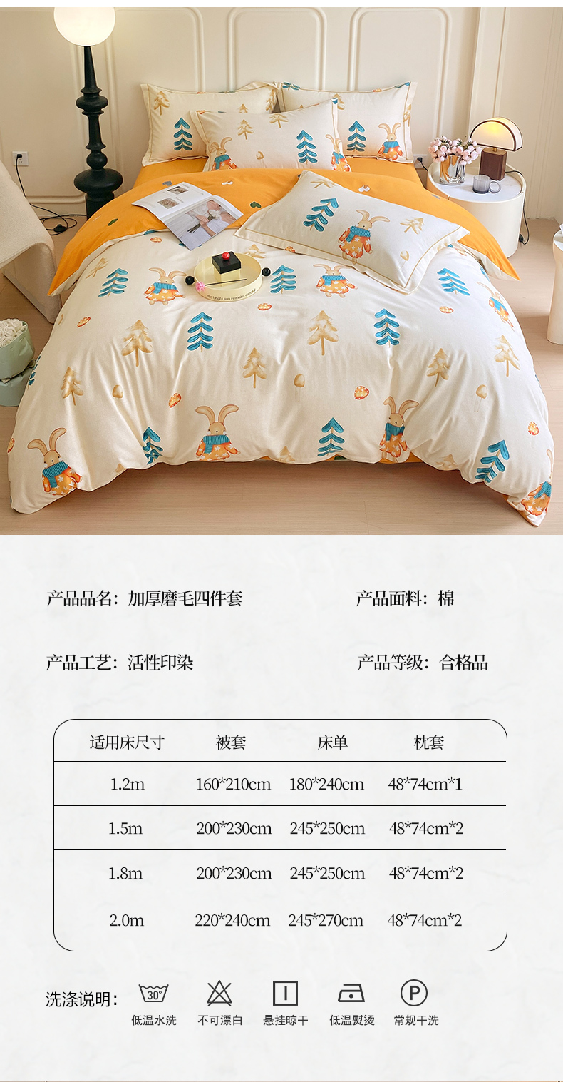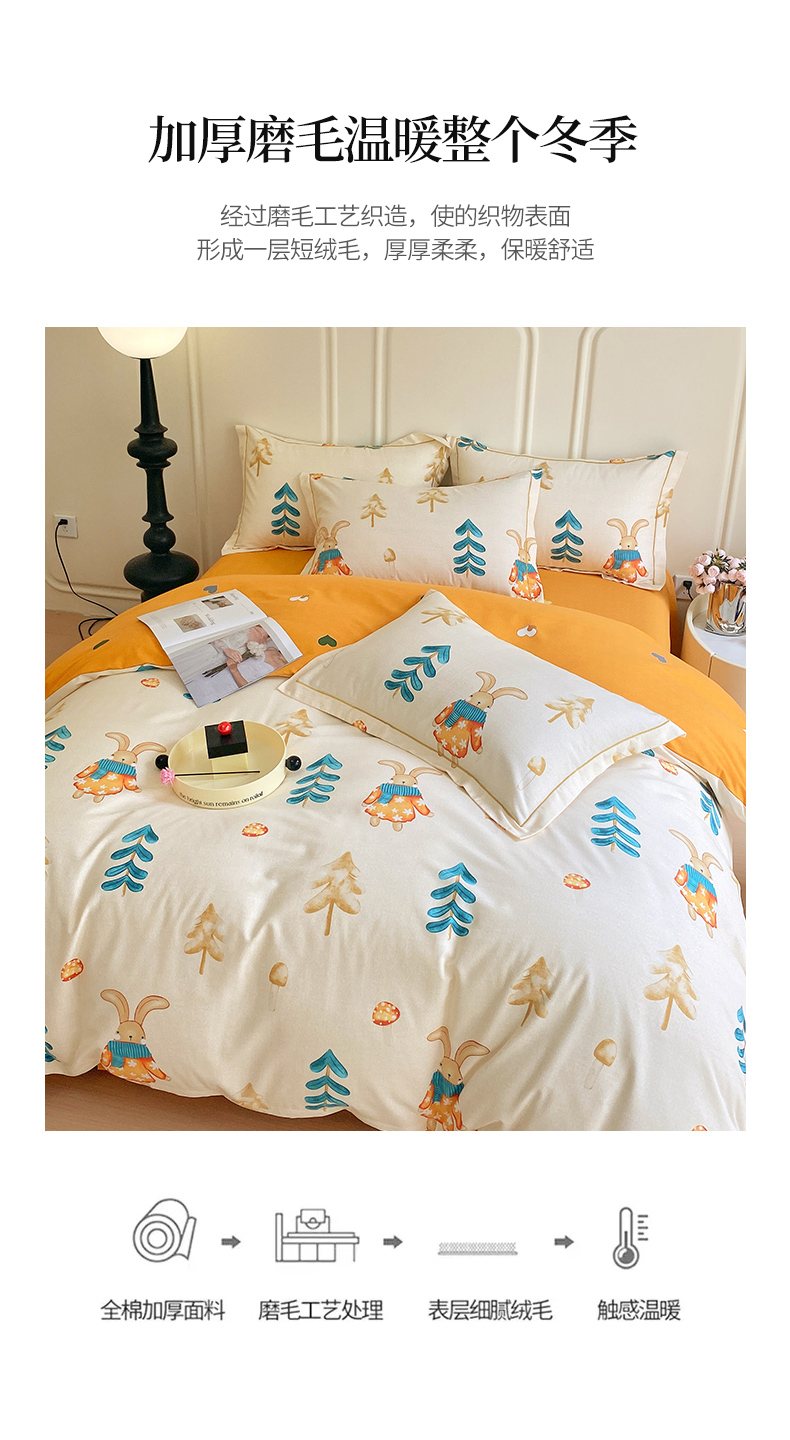 商品名称:梧桐树 2025新款轻奢新疆棉加厚磨毛四件套 森林小兔
