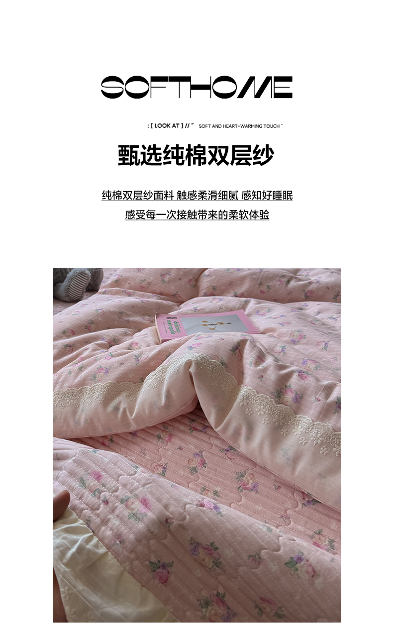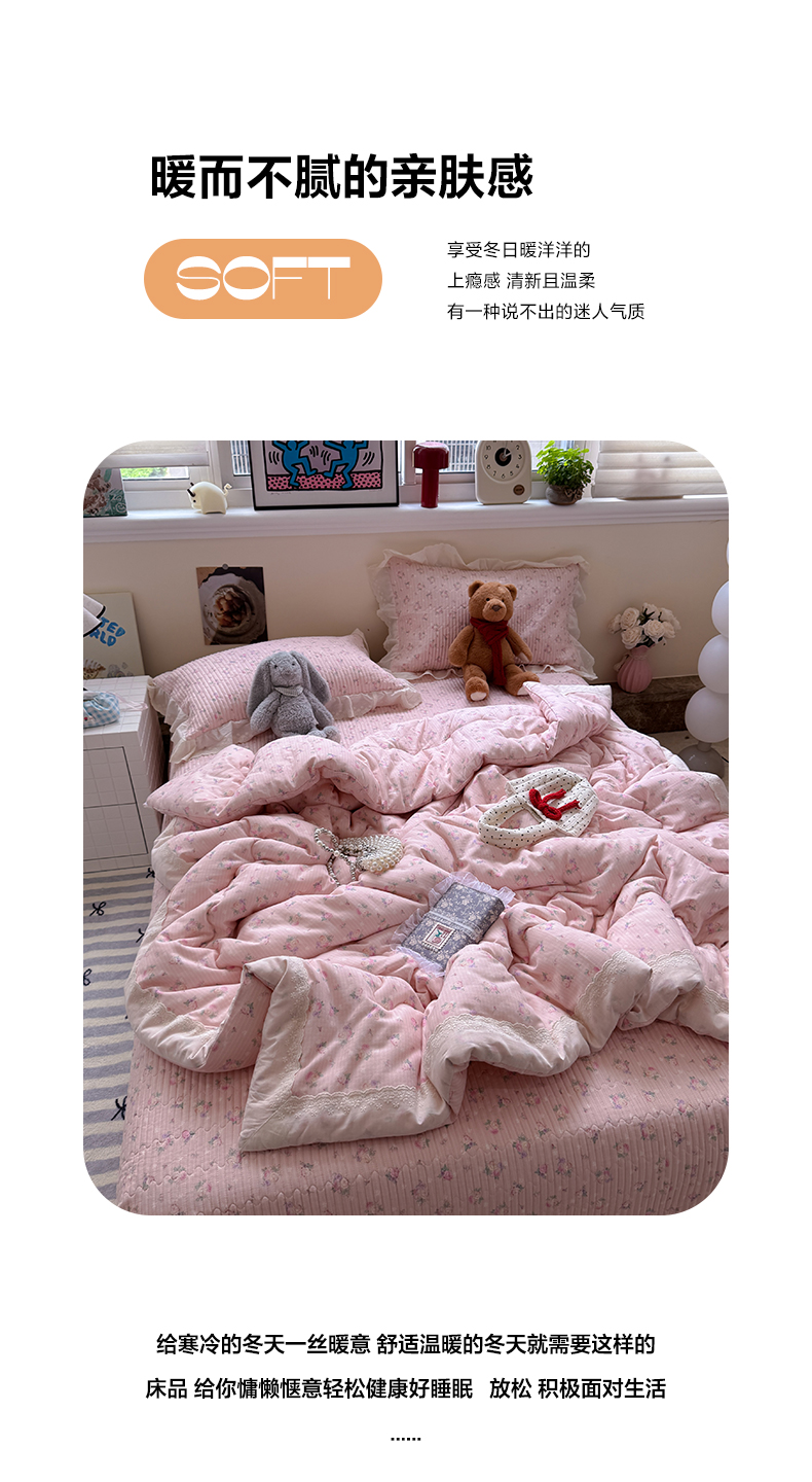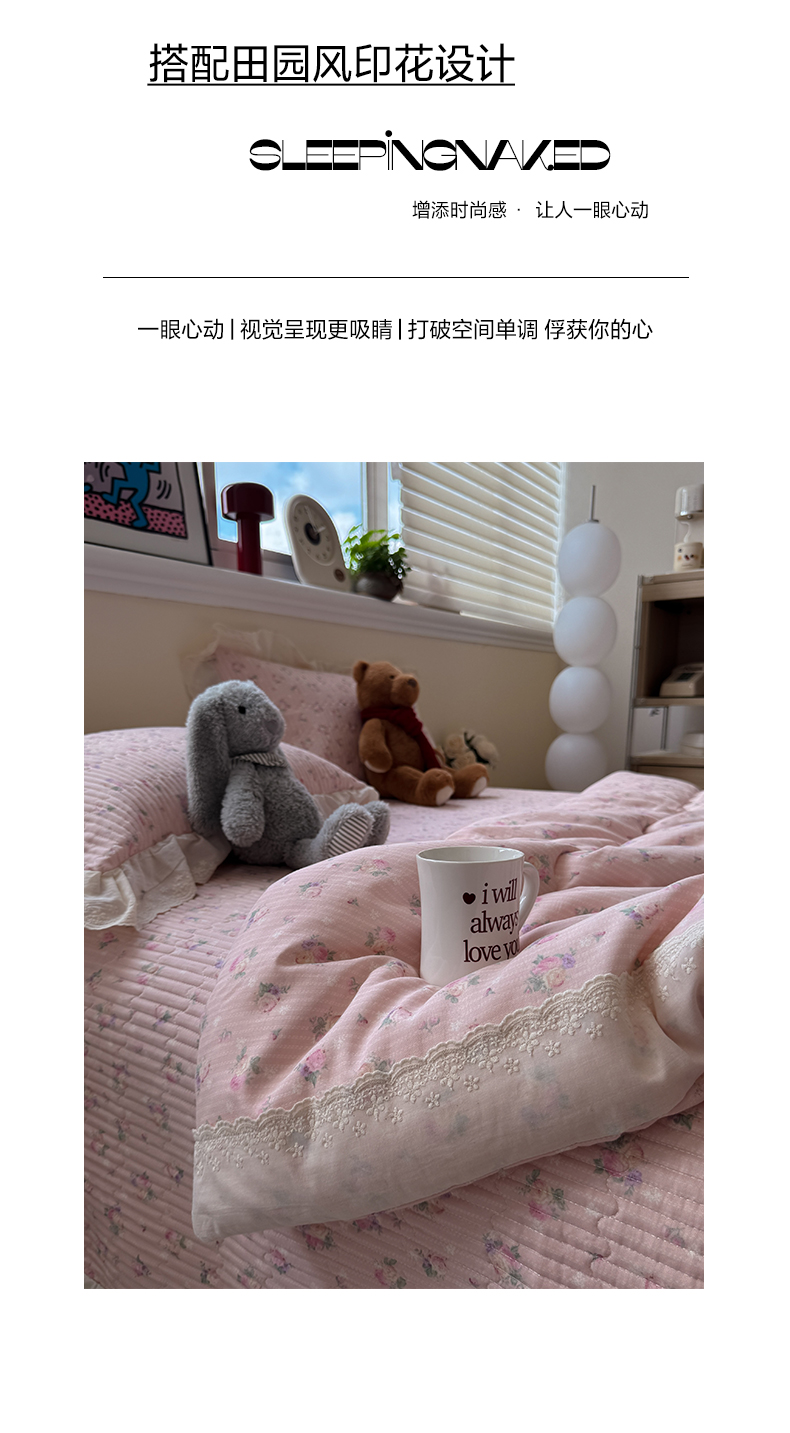 当前位置: 91家纺网 > 商品网购 > 床品套件 > 四件套 > 全棉普通四件套 > 一加一 2025新款田园风全棉纯棉双层纱床盖冬被被子被芯四件套 花初梦