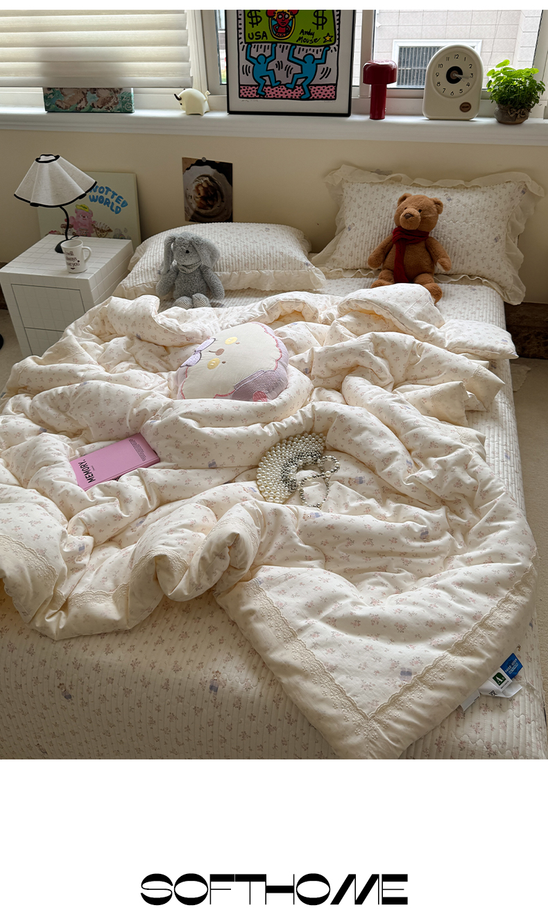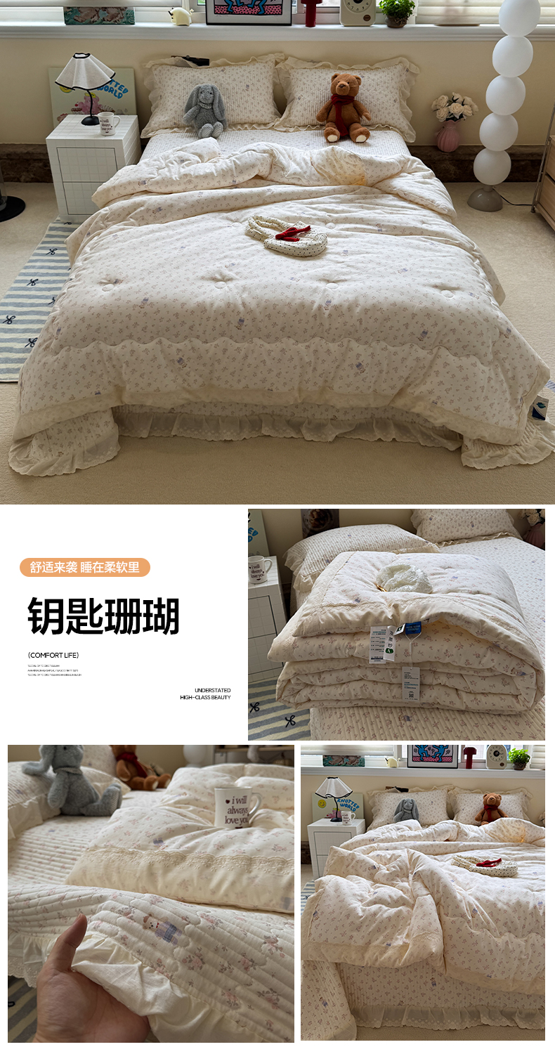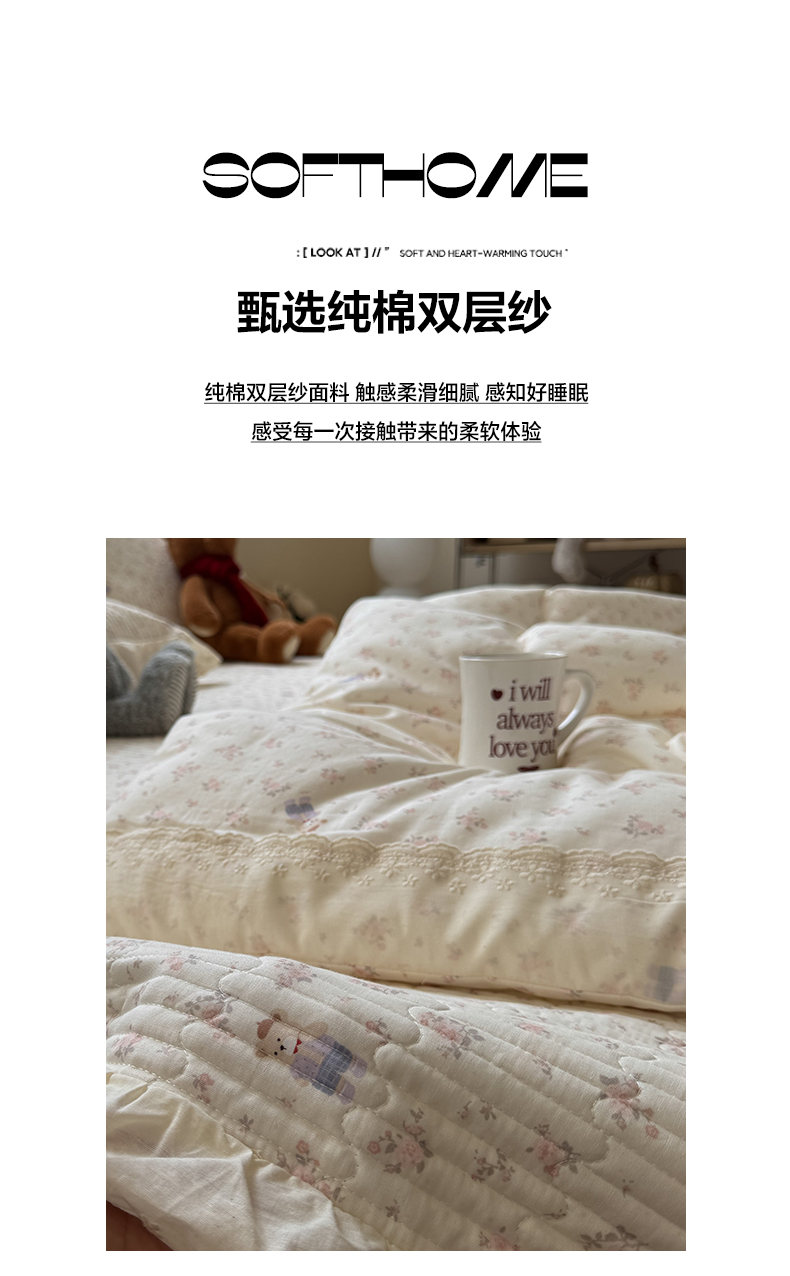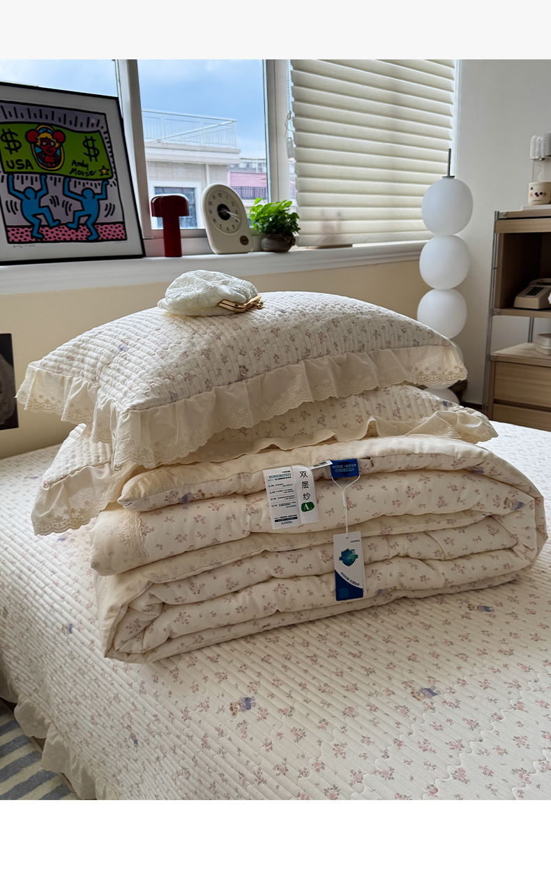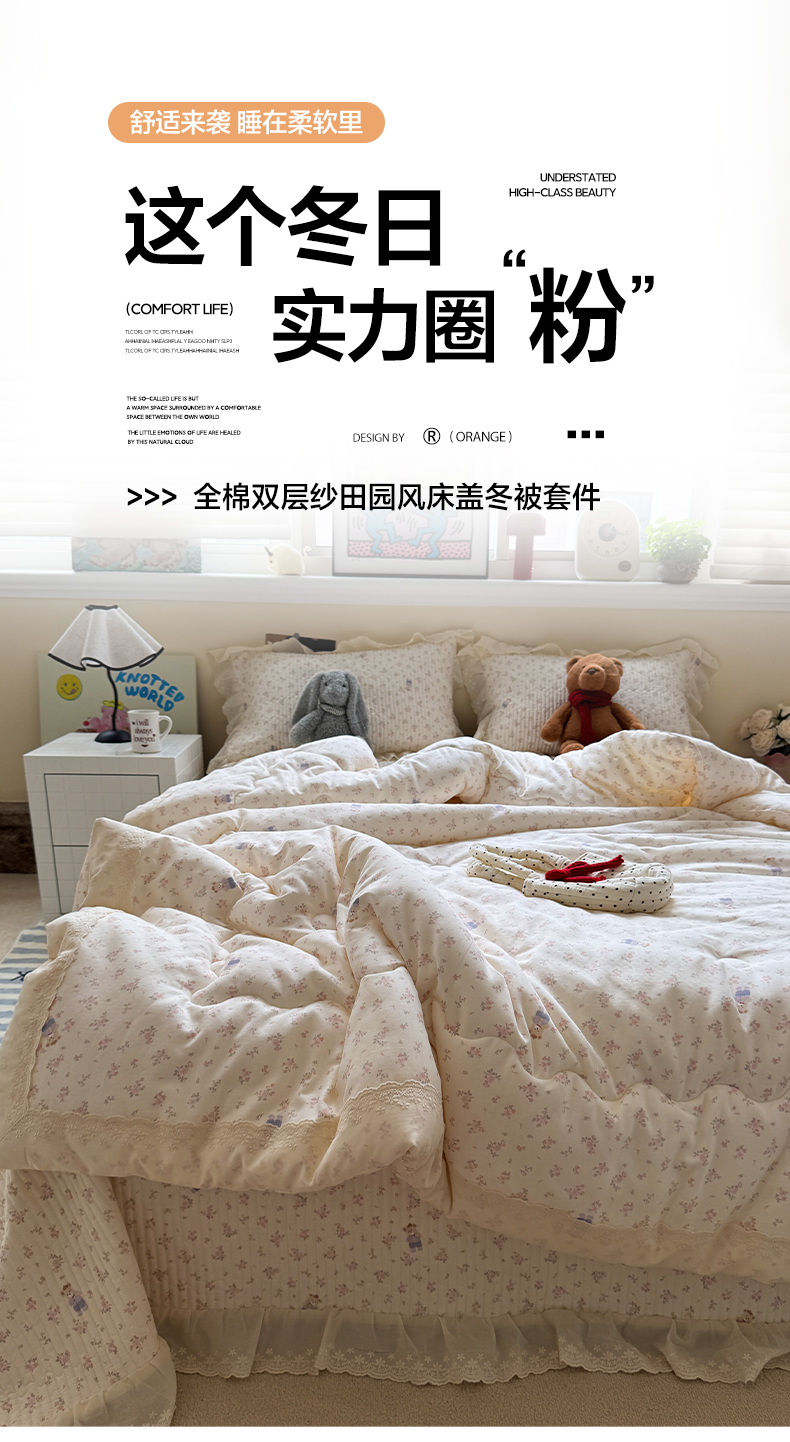 当前位置: 91家纺网 > 商品网购 > 床品套件 > 四件套 > 全棉普通四件套 > 一加一 2025新款田园风全棉纯棉双层纱床盖冬被被子被芯四件套 钥匙珊瑚