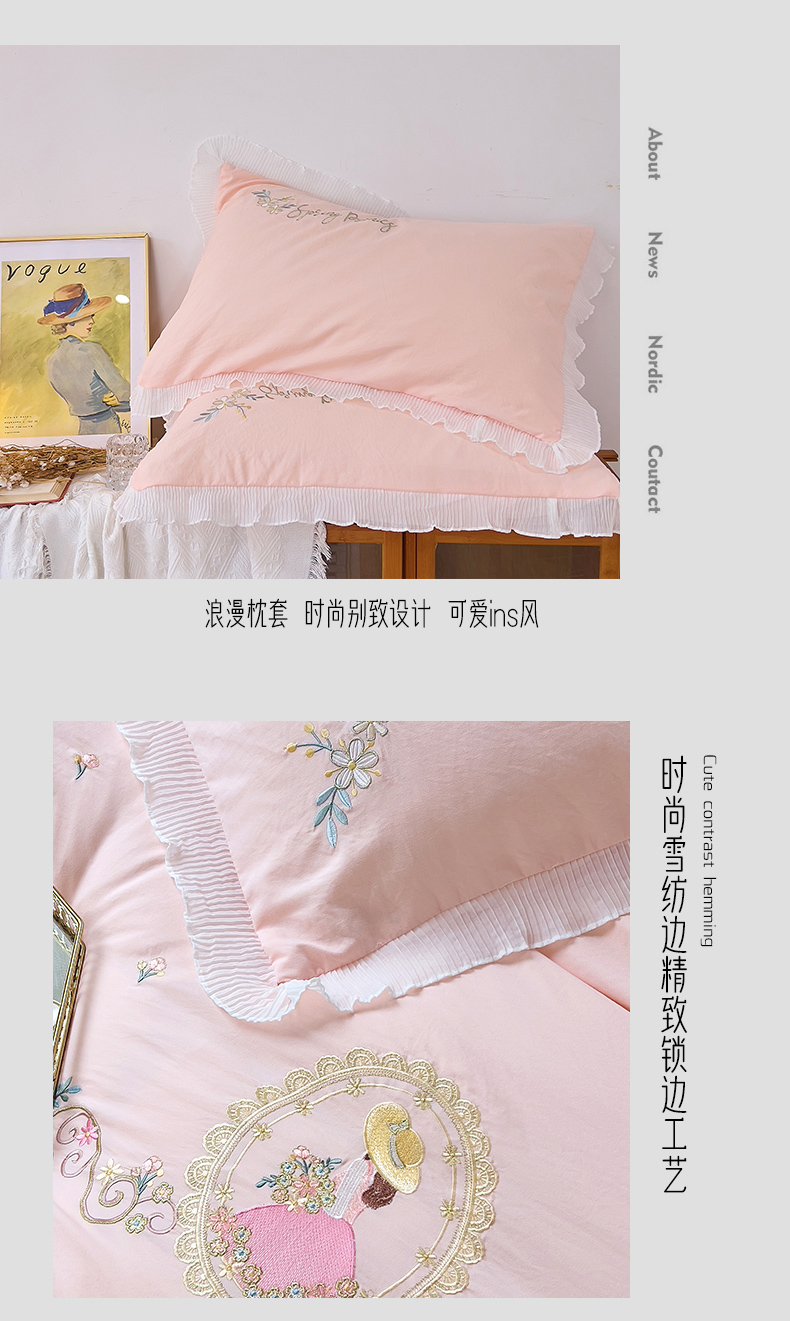 商品名称:青泽家纺 2025新款母婴级ins风韩版绣花荷叶边水洗棉磨毛四件套 花恋-蓝