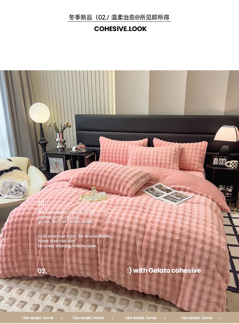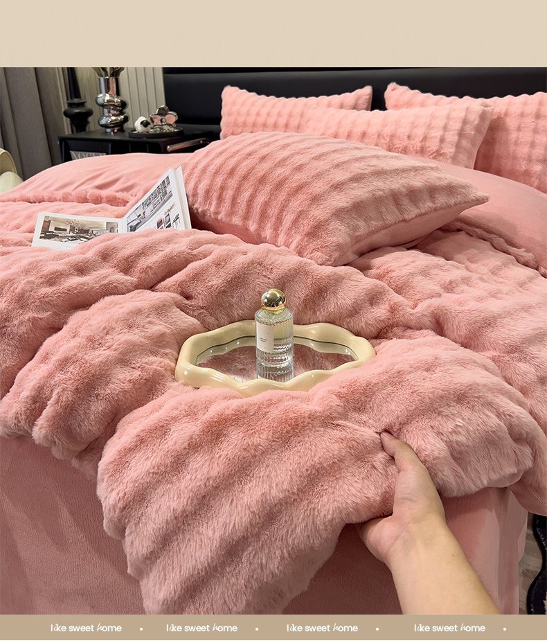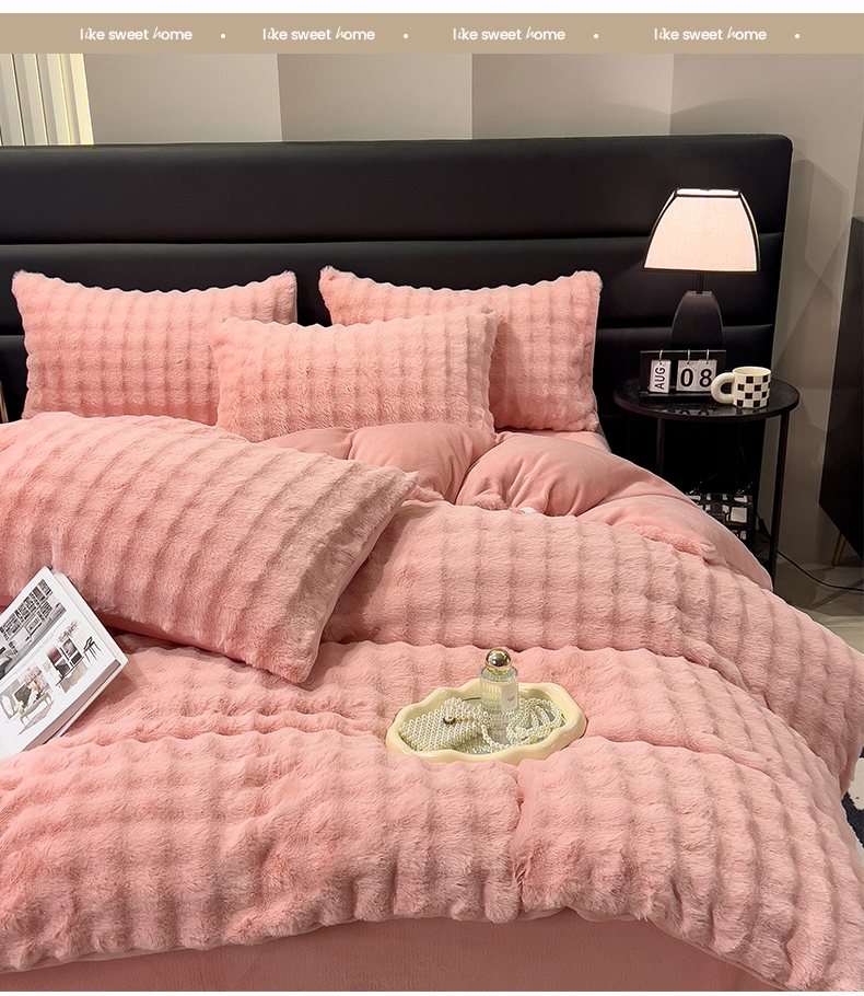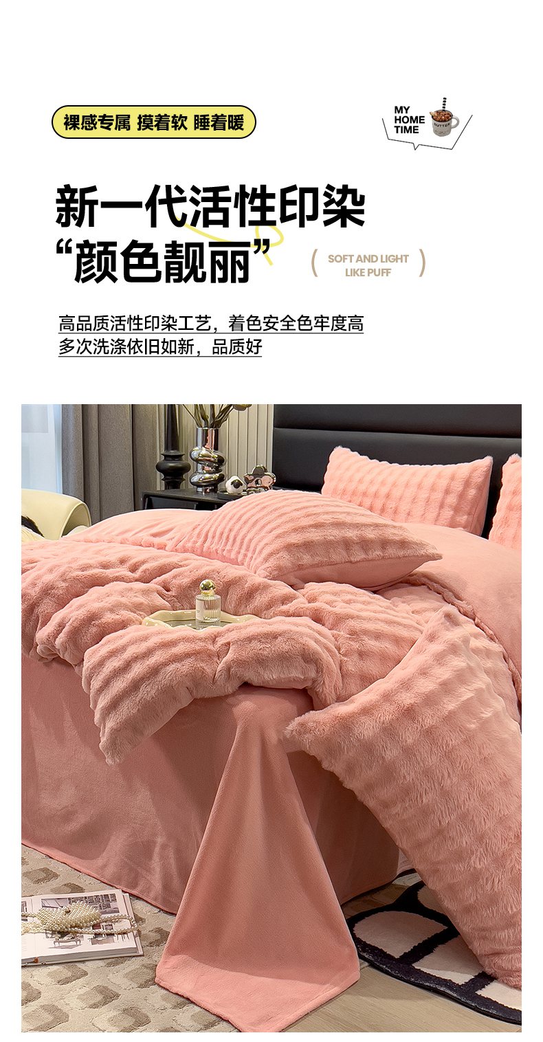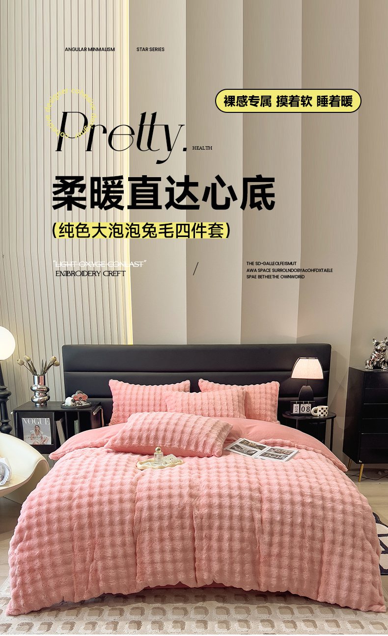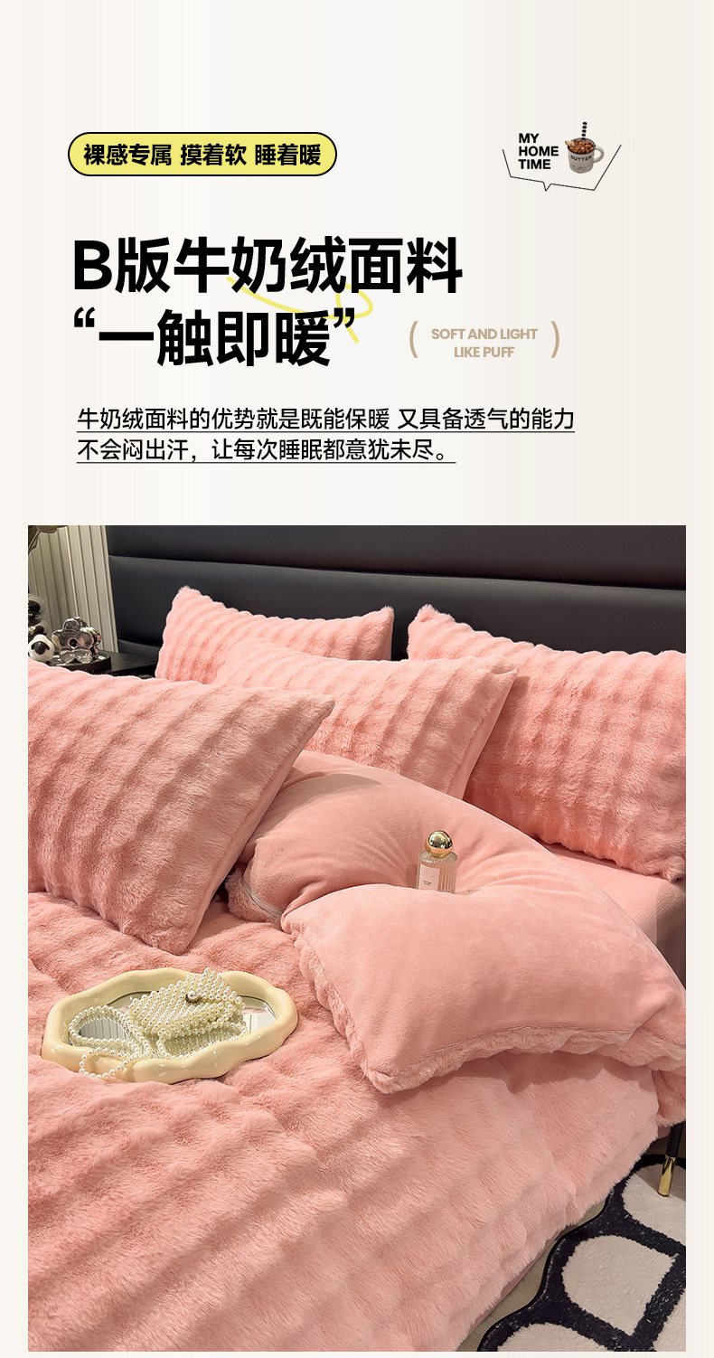 商品名称:摩妮卡 2025新款加厚大泡泡兔毛牛奶绒四件套 韶粉