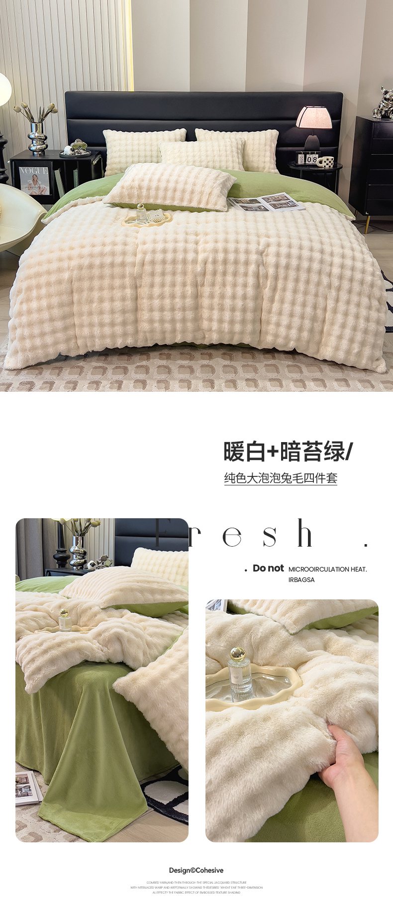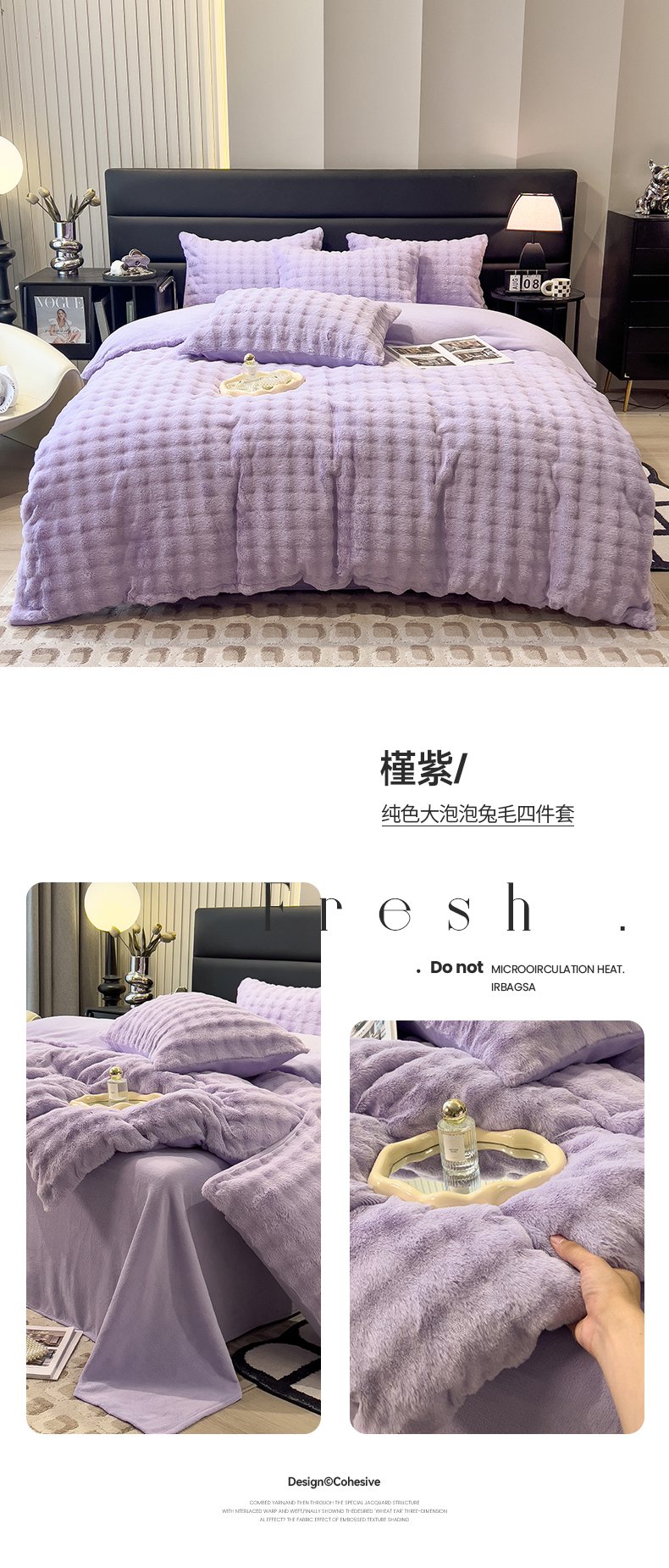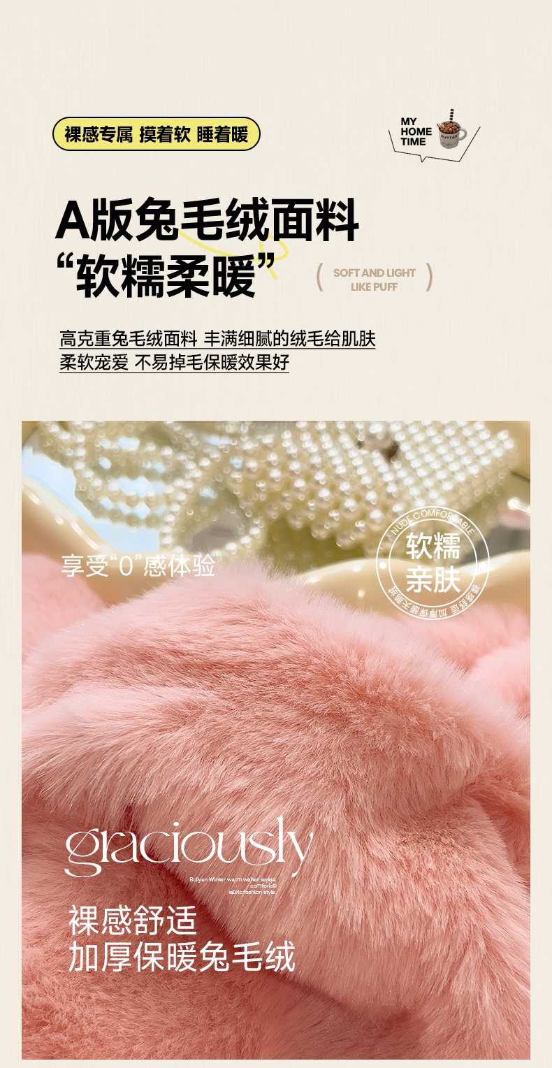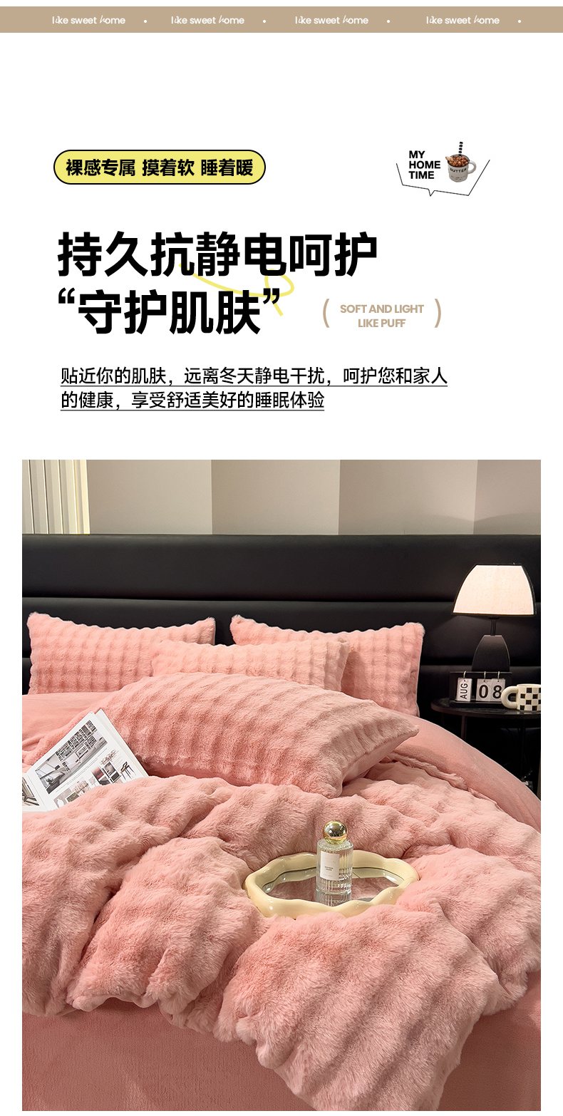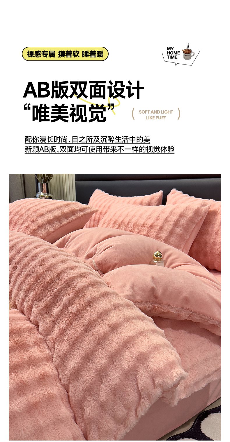 商品名称:摩妮卡 2025新款加厚大泡泡兔毛牛奶绒四件套 韶粉