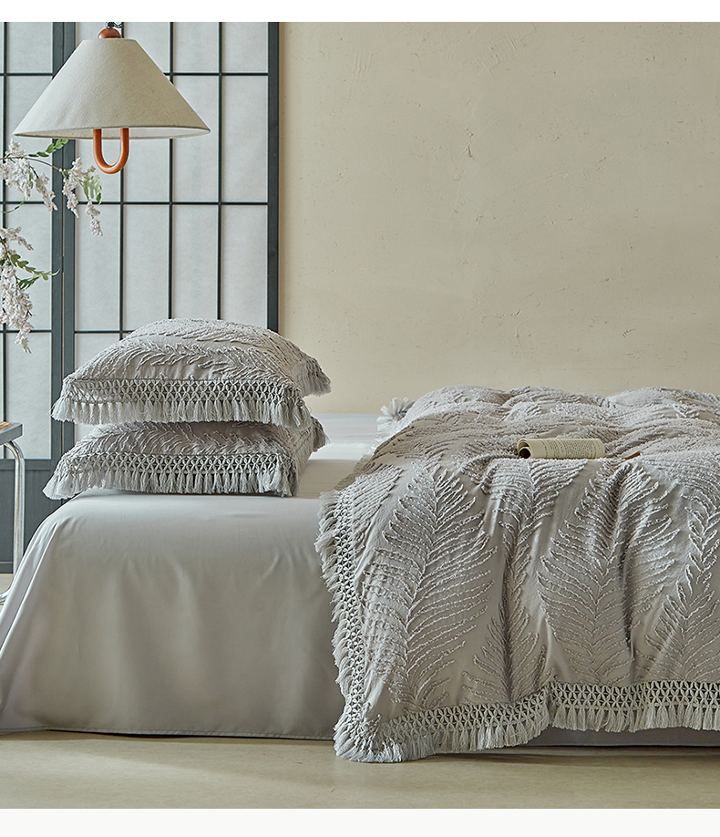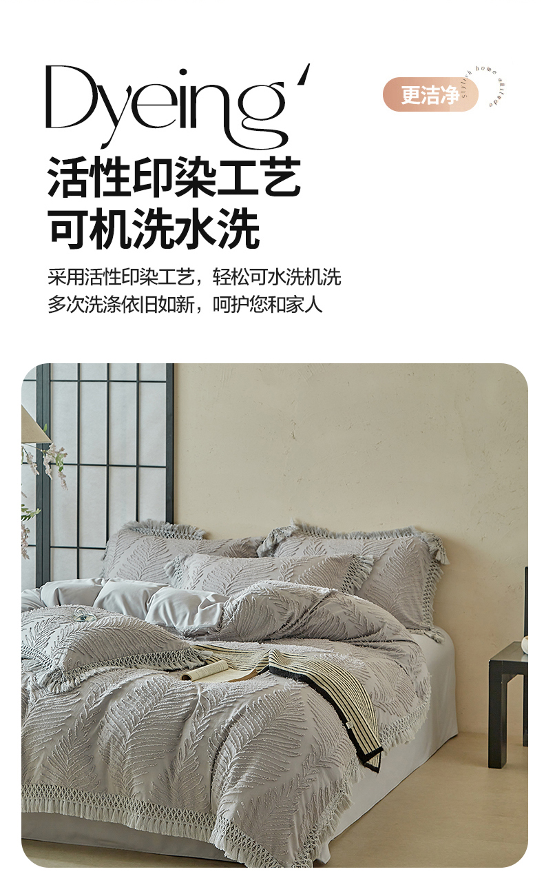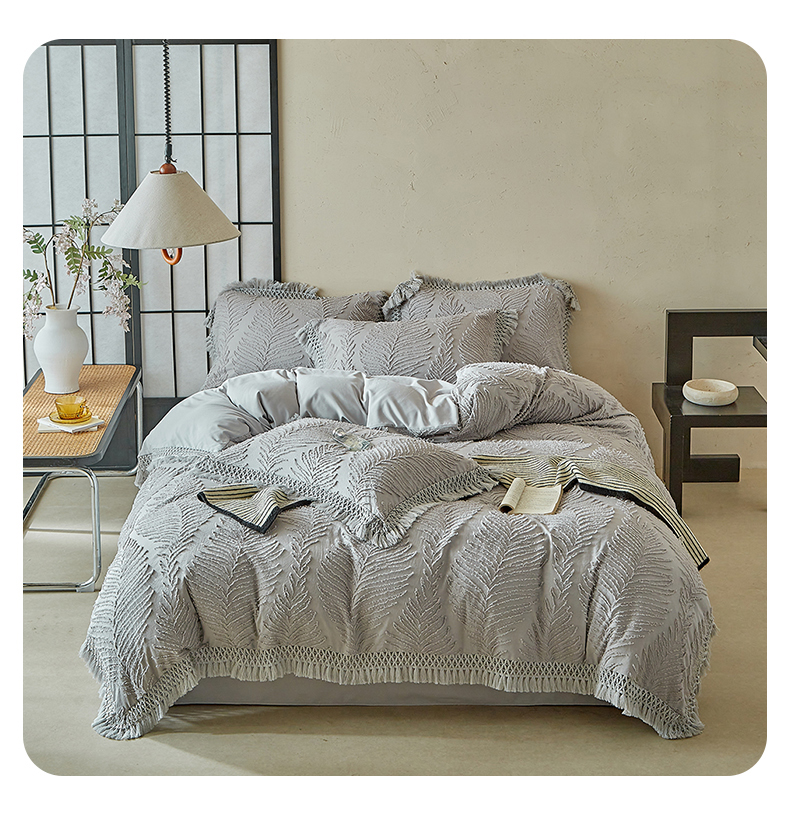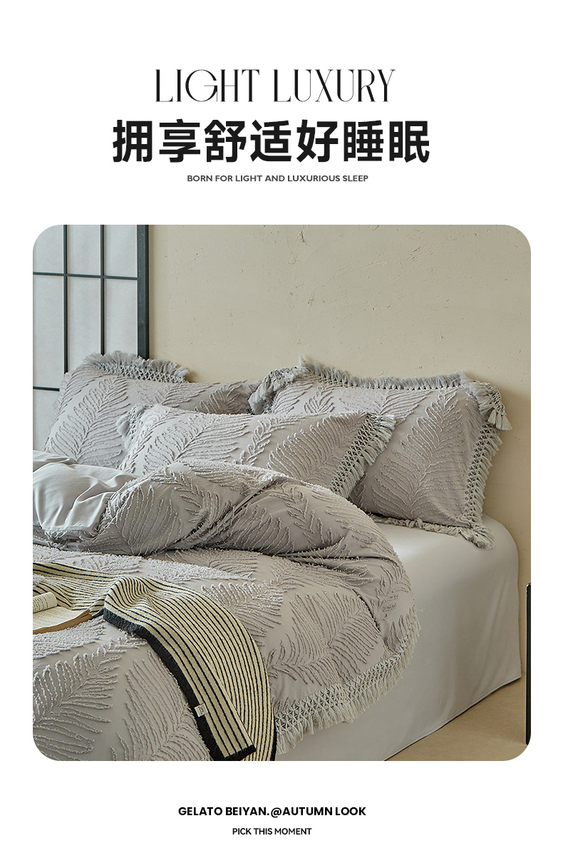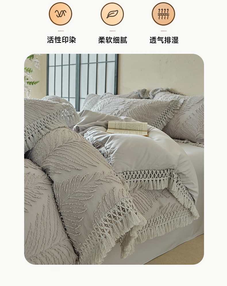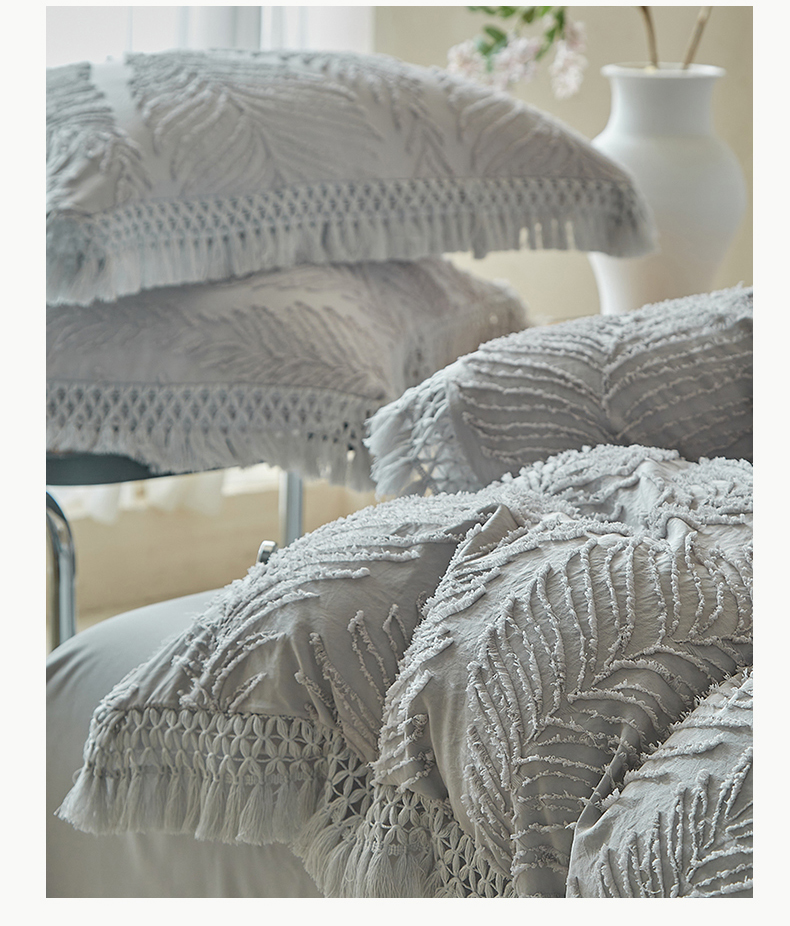 当前位置: 91家纺网 > 商品网购 > 床品套件 > 四件套 > 磨毛活性四件套 > 缘生活 2025新款剪花针叶流苏四件套四季款 民宿首选 剪花针叶浅灰+流苏