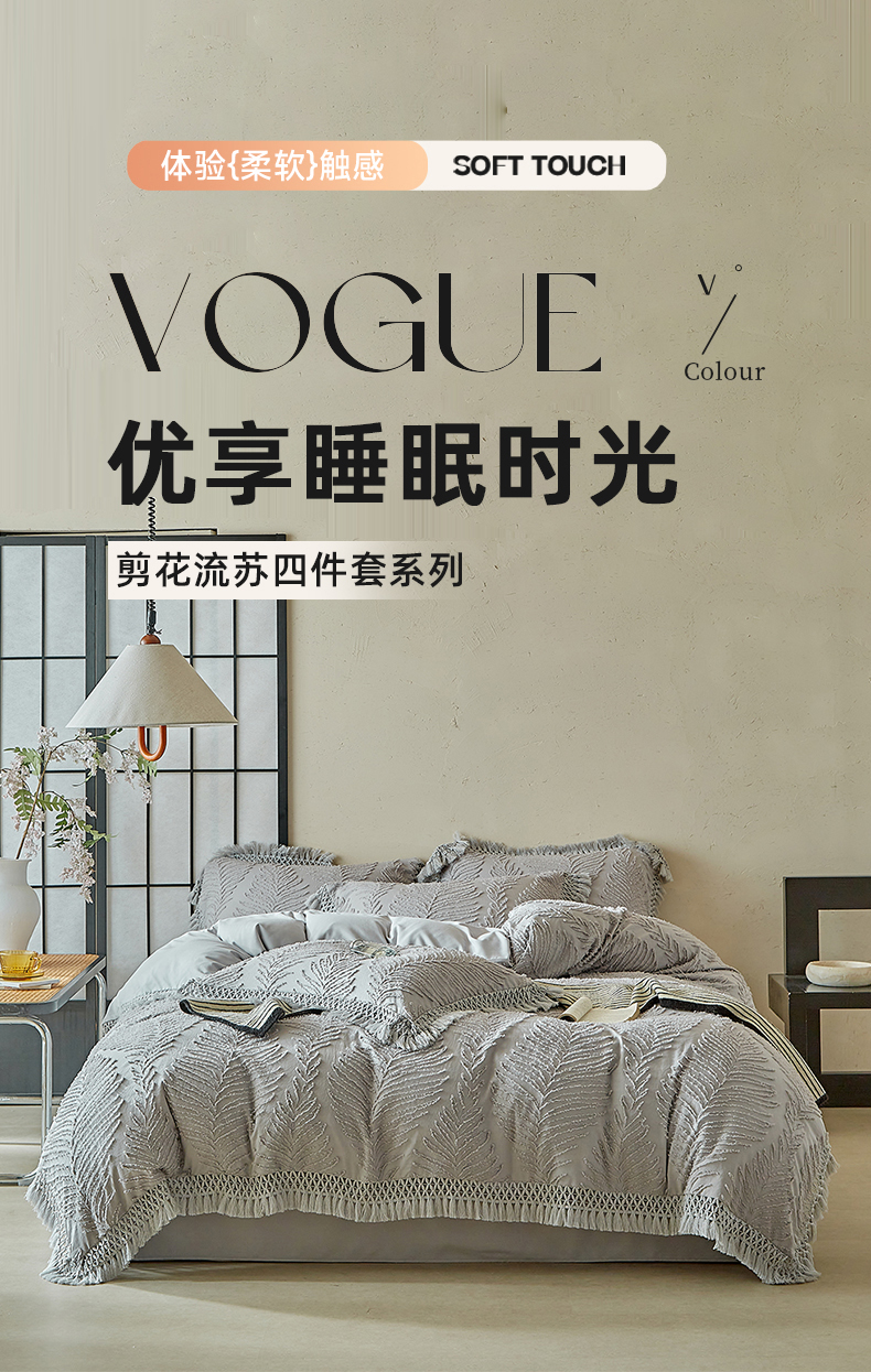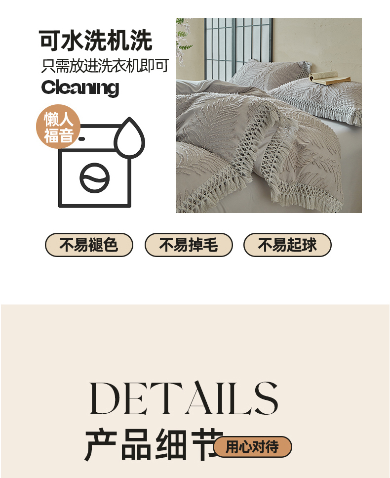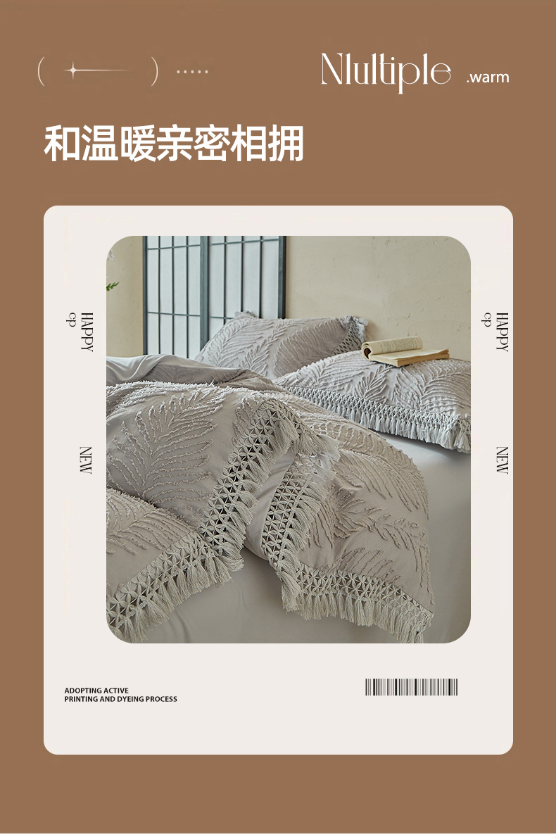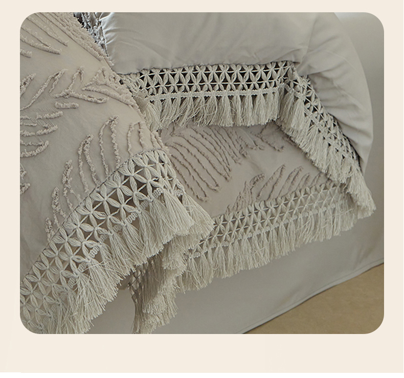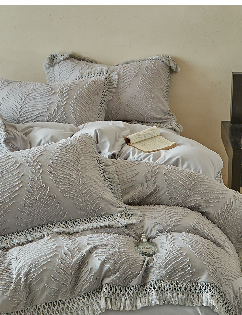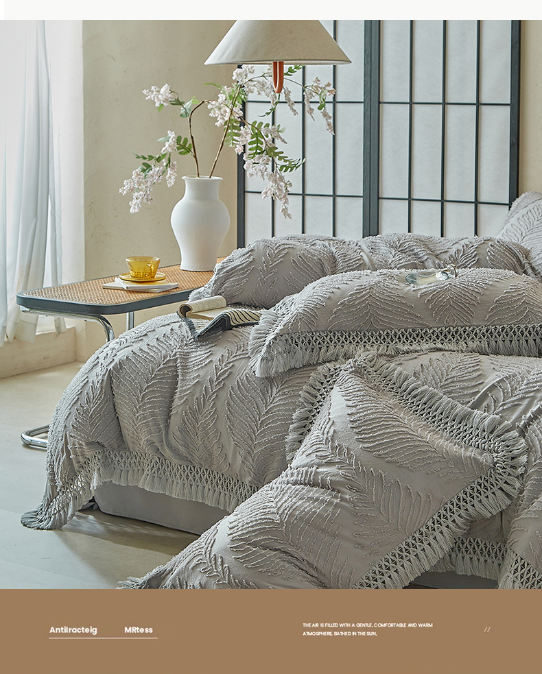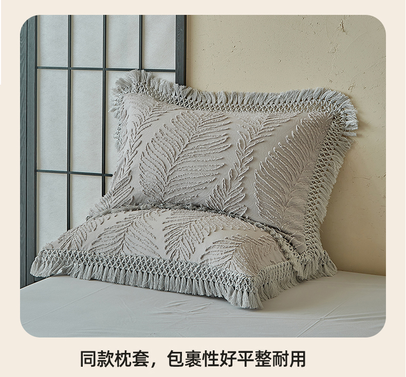 当前位置: 91家纺网 > 商品网购 > 床品套件 > 四件套 > 磨毛活性四件套 > 缘生活 2025新款剪花针叶流苏四件套四季款 民宿首选 剪花针叶浅灰+流苏