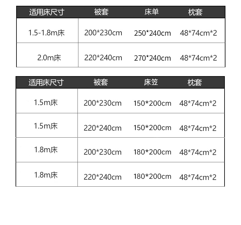 1.8m床笠款四件套被套200*230 | ¥110.00 |
