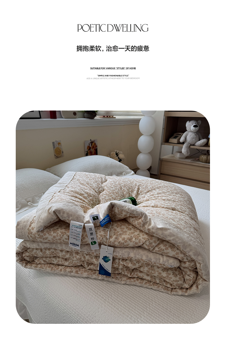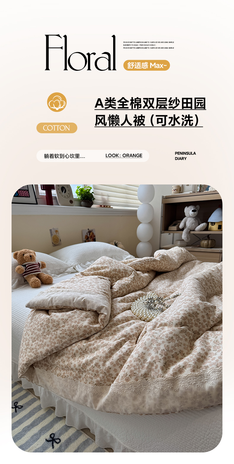 • 91家纺网 家纺一手货源 找家纺 一加一 2025新款A类全棉纯棉双层纱田园风懒人被冬被被子被芯(可水洗) 秋之寄语