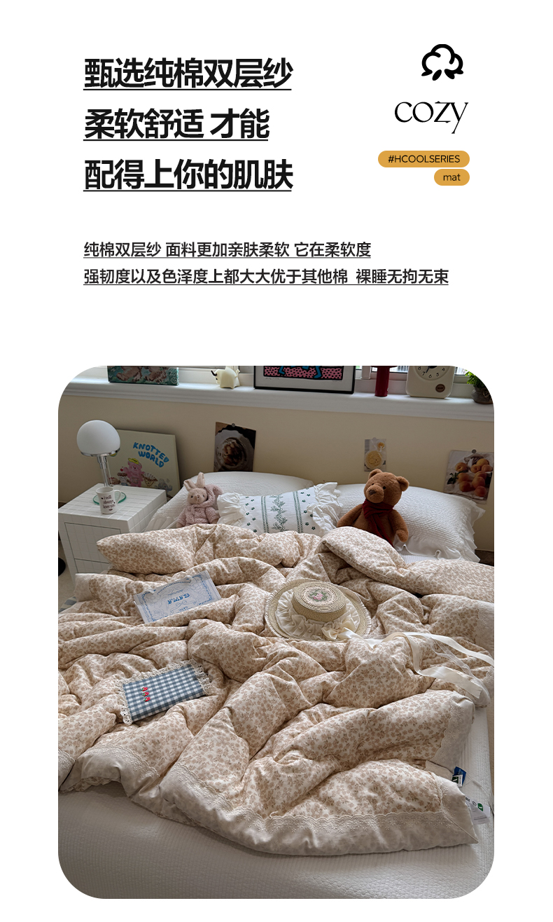 (总)一加一 2025新款40全棉双层纱印花中科抗菌被子四件套,暗香,初春,花镜,花言,蓝萱,沐风,赛琳娜,苏里南,遇见