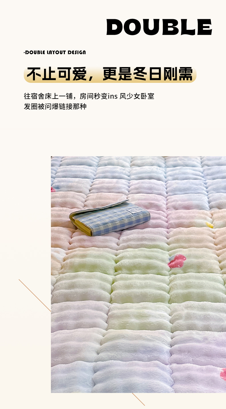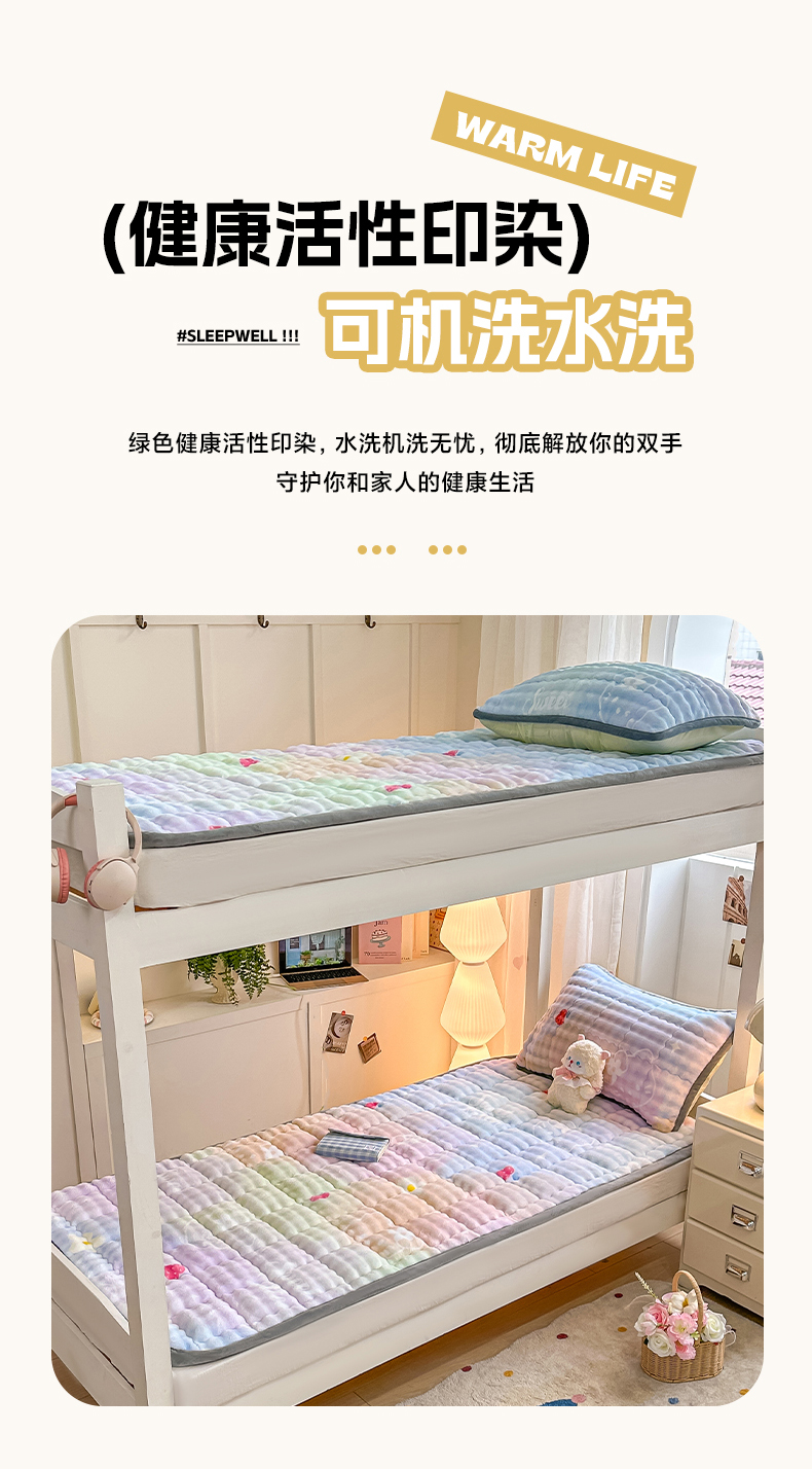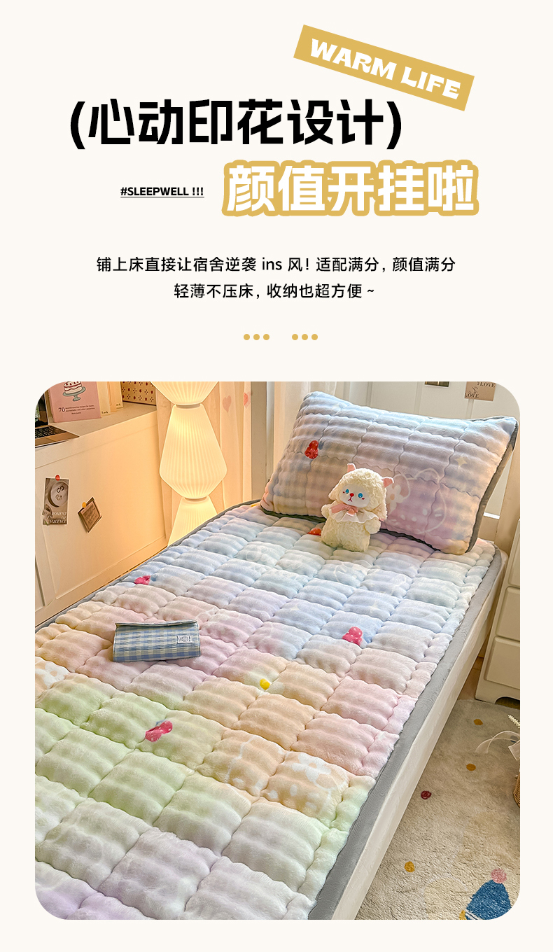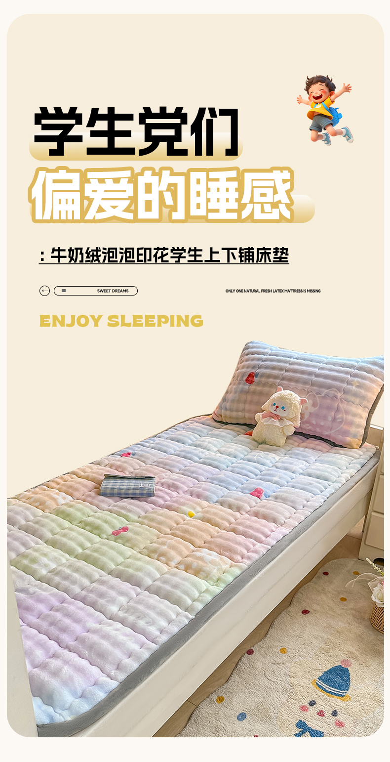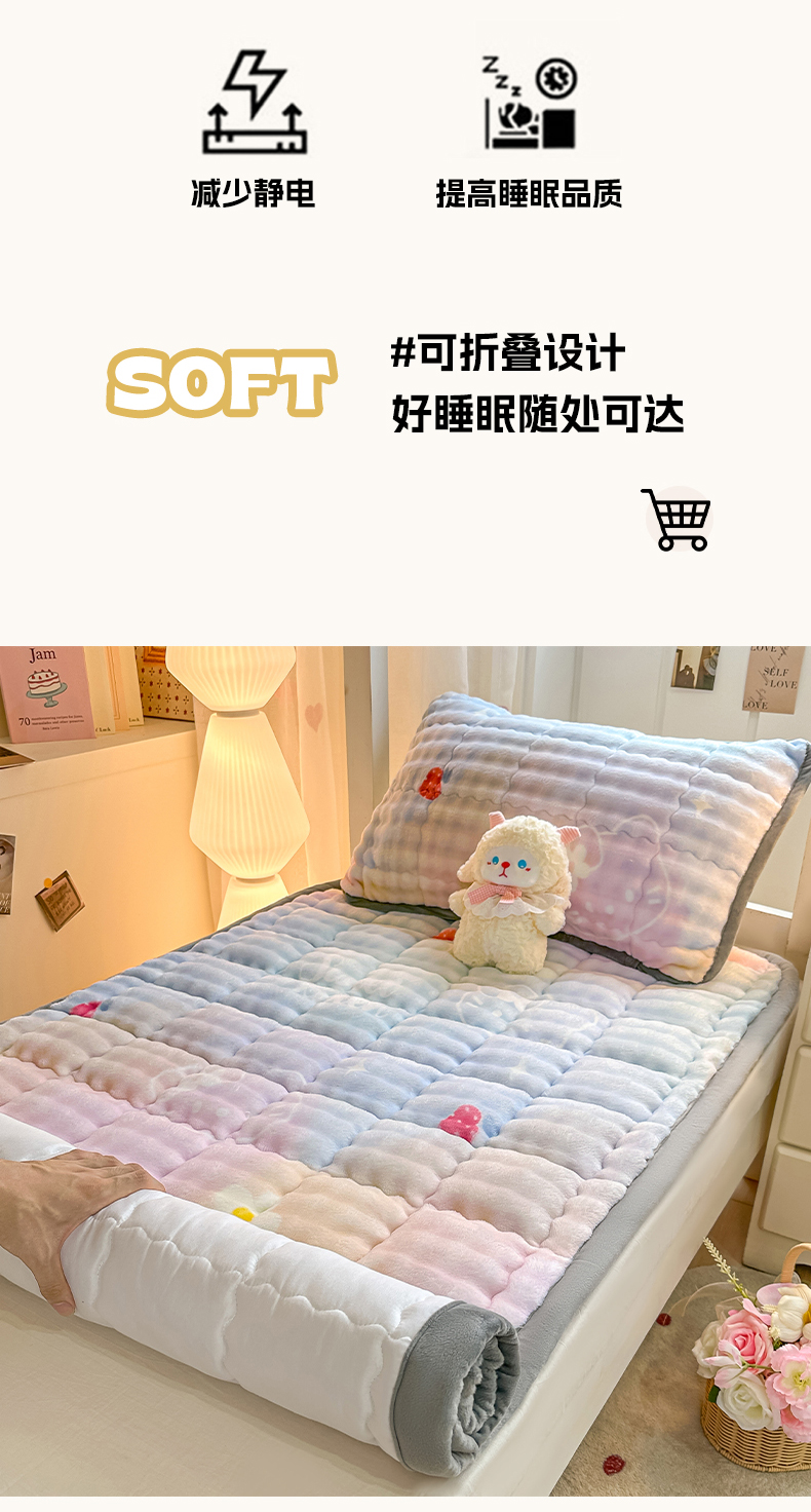 当前位置: 91家纺网 > 商品网购 > 床垫/床褥 > 普通床垫 > 眠势力 2025新款牛奶绒泡泡床褥加绒仿兔毛绒床褥子秋冬保暖珊瑚绒夹棉学生上下铺床护垫 草莓KT