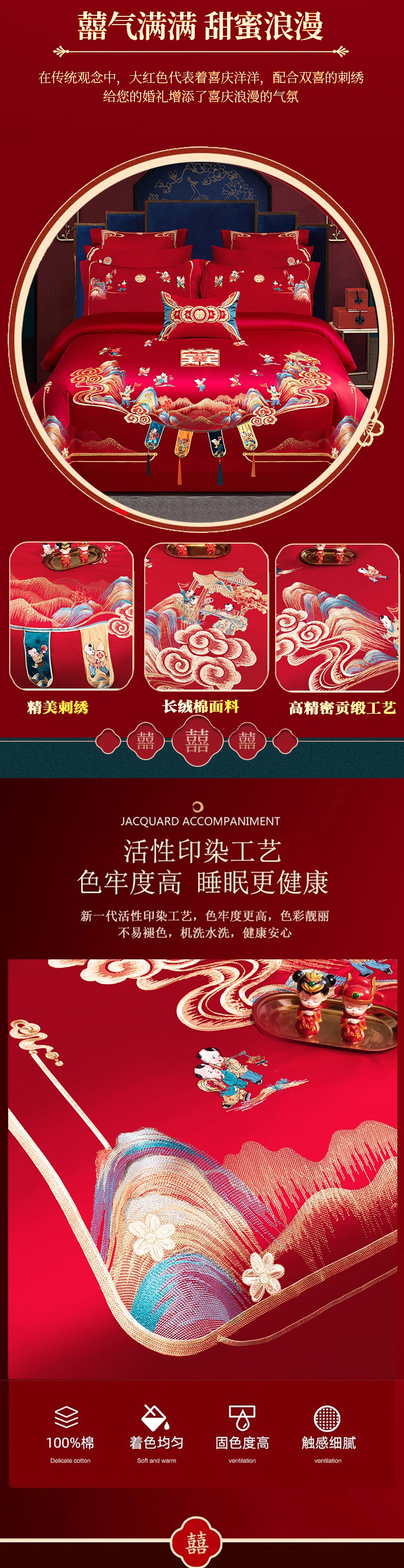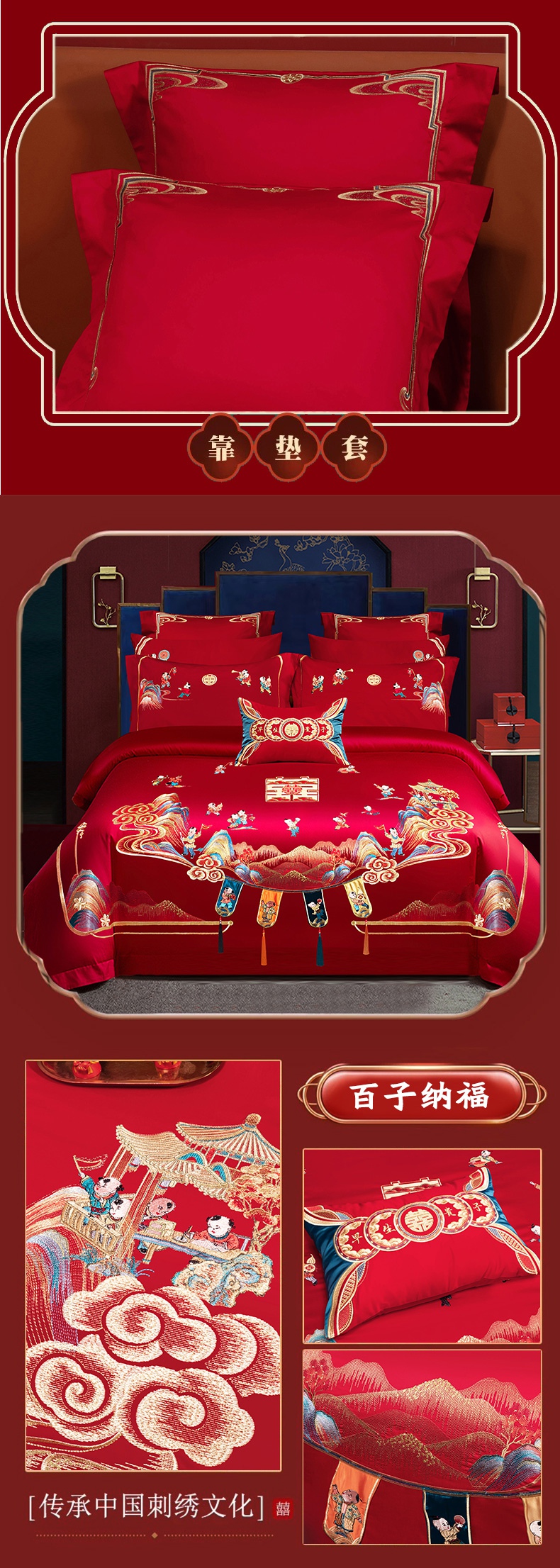 当前位置: 91家纺网 > 商品网购 > 床品套件 > 四件套 > 长绒棉四件套 > (总)柏拉图 2025新款100s长绒棉贡缎提花重工艺刺绣婚庆四件套多件套