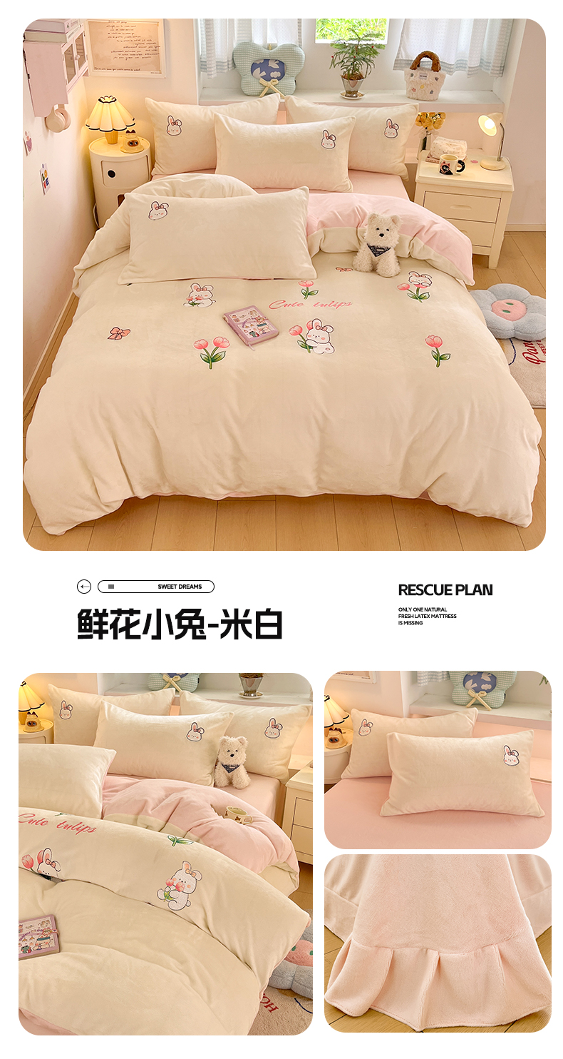 商品名称:利欧 2025新款满绣卡通牛奶绒刺绣四件套 鲜花小兔-酱紫